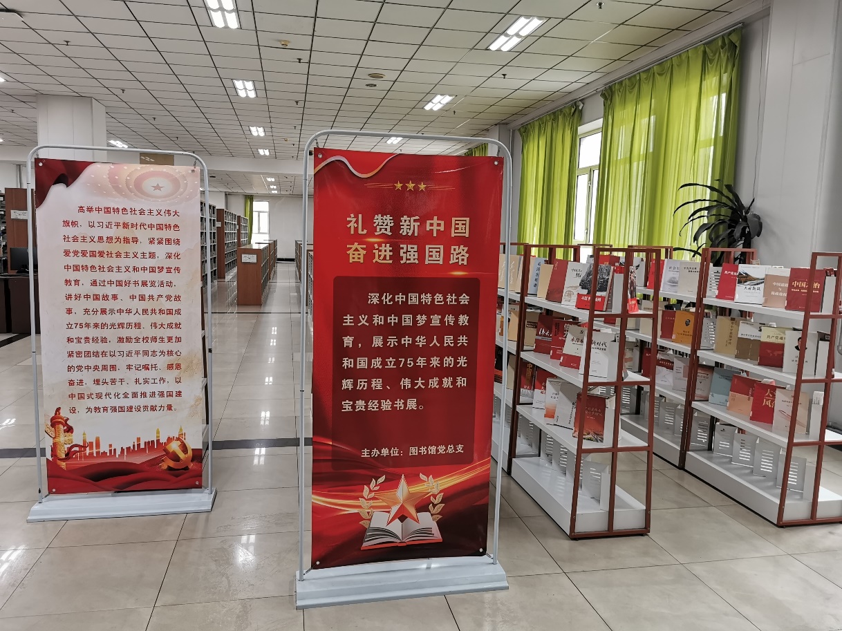 为热烈庆祝中华人民共和国成立75周年,全面展示中华人民共和国成立75年来的光辉历程、伟大成就和宝贵经验,10月15日,图书馆党总支在图书馆A馆二楼举办了“礼赞新中国 奋进强国路”主题书展。