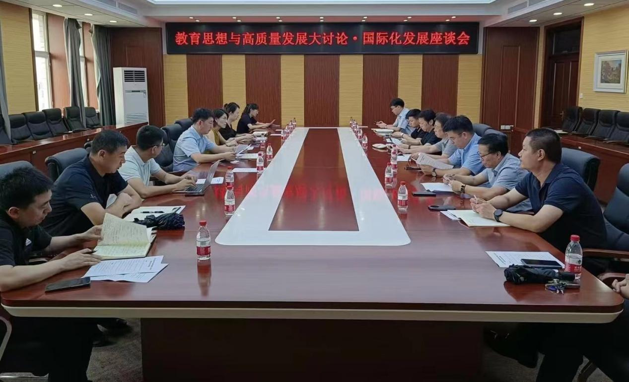 为深入推进教育思想与高质量发展大讨论走深走实,进一步提升学校国际化水平,助力学校高质量发展,7月24日下午,国际合作处在行政楼1008室,以“聚焦国际化人才培养,加大国际科研合作力度,推动与国外高校务实交流合作”为主题,召开了“教育思想与高质量发展大讨论·国际化发展座谈会”。各学院分管外事副院长及国际合作处相关人员参加了座谈会。