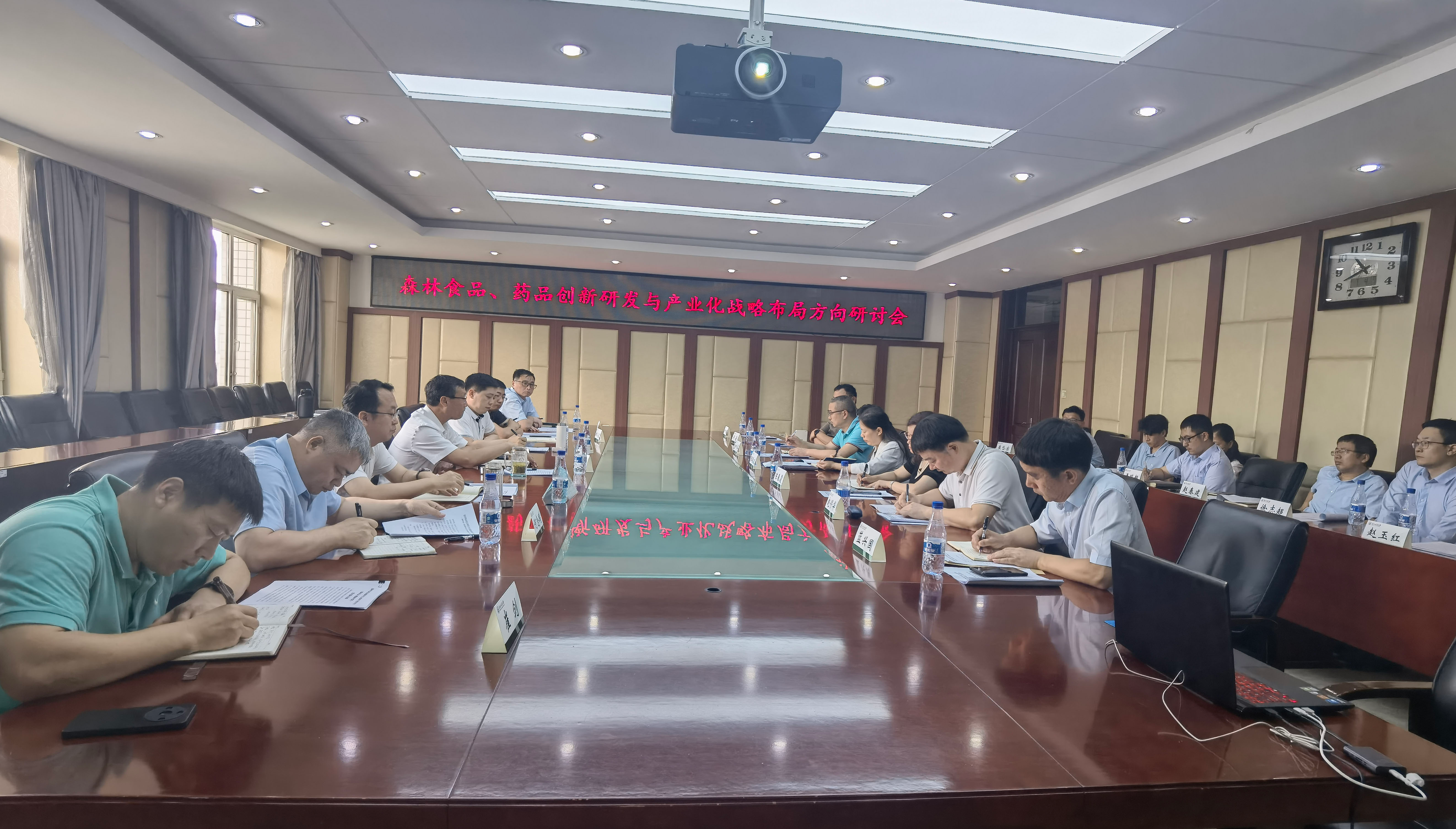 为践行大食物观,服务大健康产业,探索学校新质生产力跃升发展新方向,7月4日上午,科学技术研究院在综合楼8楼会议室组织召开了“森林食品、药品创新研发战略布局研讨会”。校长宋文龙,党委常委、副校长于海鹏,党委常委、副校长李明泽,生命学院、化资学院负责人,科研院、研究生院、规划处有关负责人,有关领域专家代表等出席会议。