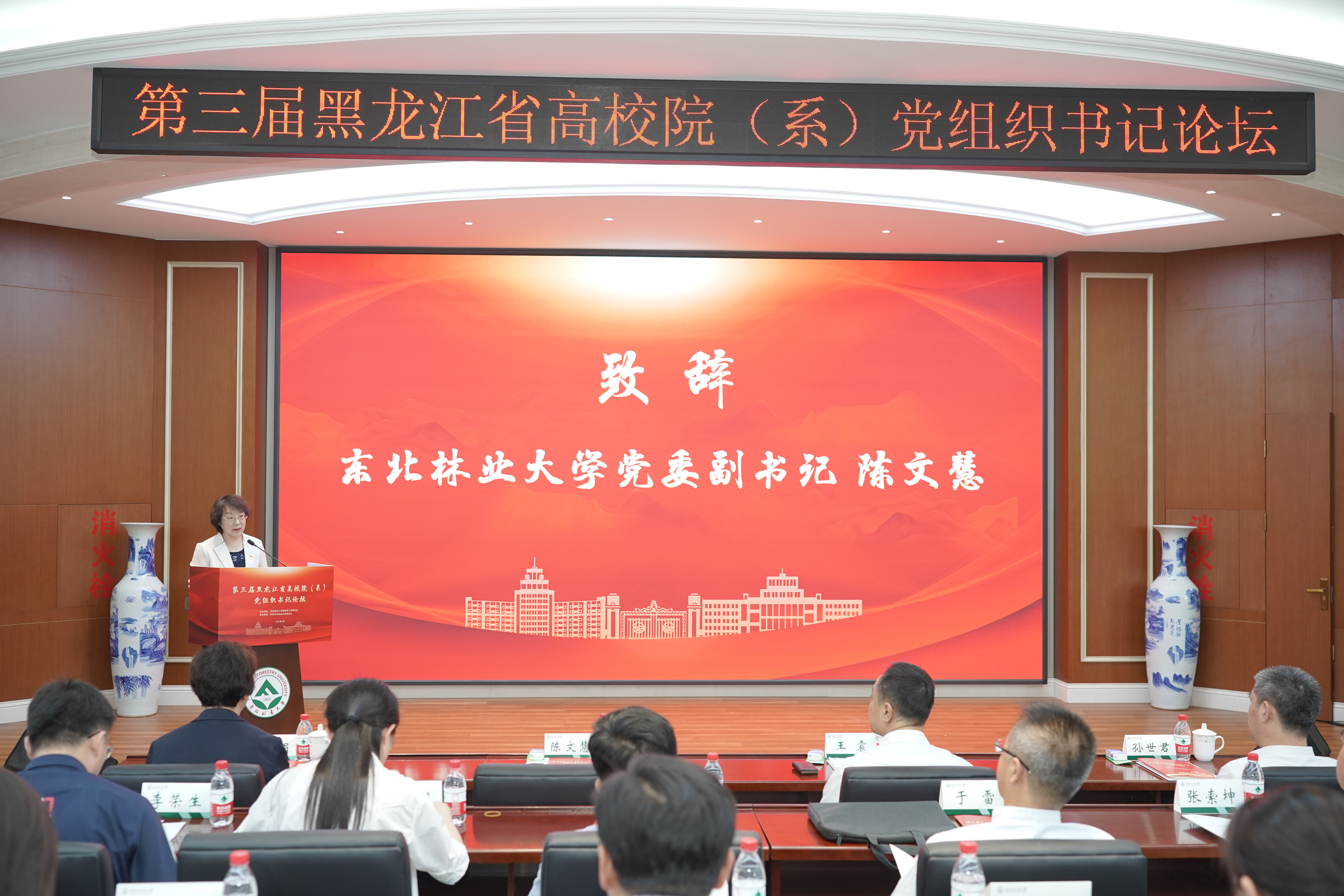 陈文慧在致辞中表示,学校党委坚持以习近平新时代中国特色社会主义思想为指导,在教育部党组和省委的坚强领导、省委教育工委的悉心指导下,突出“以林育人”特色,实施“党建领航,树木树人”工程,打造“兴林担当、美美与共”党建品牌,以高质量党建引领推动事业高质量发展,希望以举办此次论坛为契机,与兄弟高校深化交流合作,共同为教育强国强省建设贡献力量。