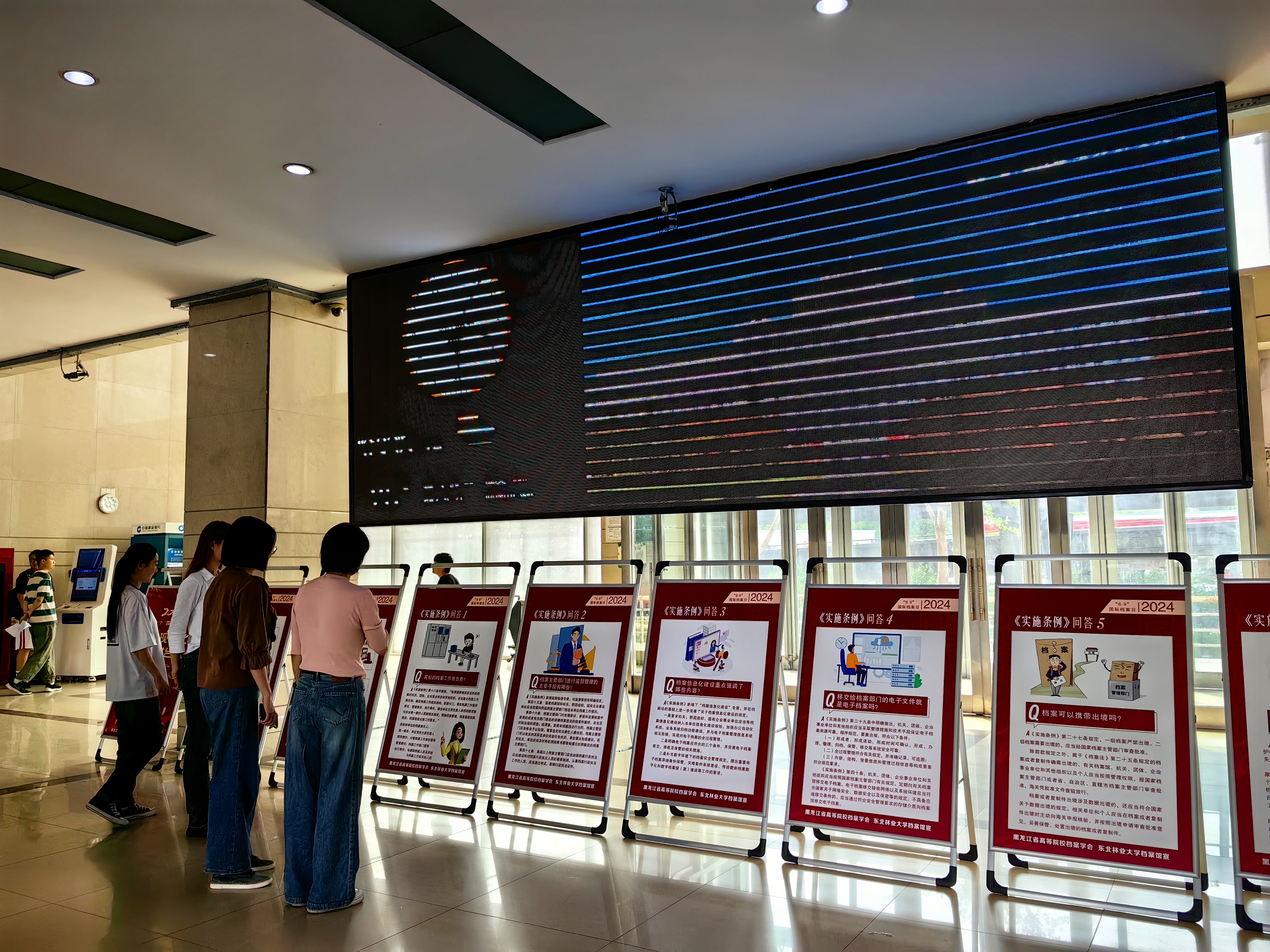 今年是《中华人民共和国档案法实施条例》正式实施的第一年,学校积极响应黑龙江省高等院校档案学会组织开展的《实施条例》的联展宣传活动要求,于6月7日至14日,在丹青楼一楼开展了以《实施条例》为主题的展览活动,面向全校师生介绍了《实施条例》的发展历程以及常见的问题,为全校师生员工打造一份专属于6月的档案工作风景,更为即将离校的毕业生增添一份珍贵的东林记忆。