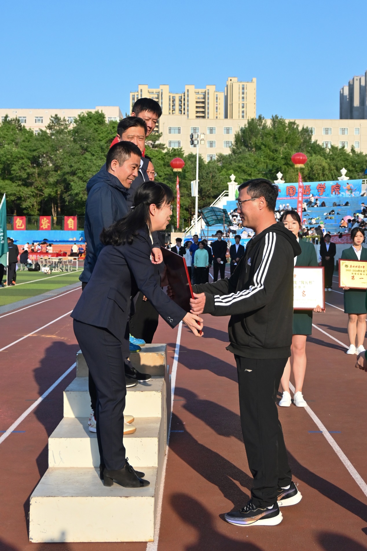 校团委书记李晶才宣布了学生组体育道德风尚奖评比成绩。体育部副主任王孝健宣布了学生2023~2024年度“十佳运动员”名单,2023-2024年度“院长杯”系列赛团体成绩,阳光体育工作先进单位名单。