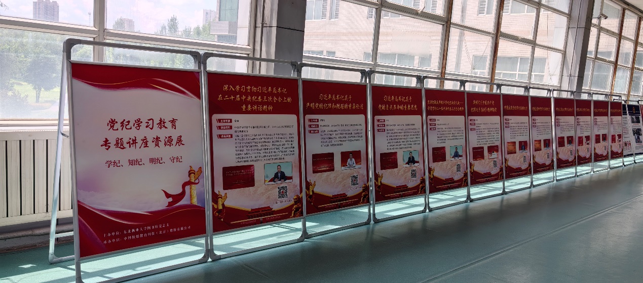 为持续助力全校师生党员扎实、深入开展党纪学习教育,图书馆党总支挖掘馆藏资源,在图书馆连廊举办党纪学习教育专题讲座资源展,向读者推介以党纪学习教育为主题的数据库视频讲座资源。
