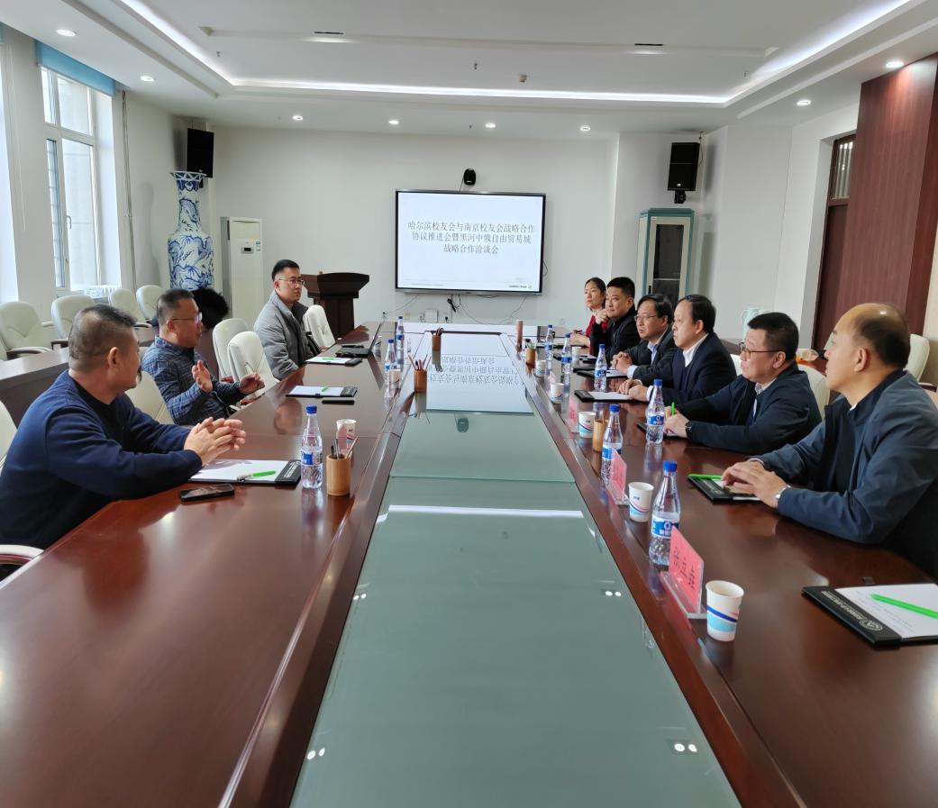 12月20日上午,我校哈尔滨校友会与南京校友会战略合作协议推进会暨黑河中俄自由贸易城战略合作洽谈会在成栋楼713召开,本次会议以“聚友情、建平台、融资源、共发展”为主题,两地校友会负责同志及企业代表展开了多角度合作思考,达成了对俄贸易初步方案。学校党委常委、副校长李顺龙,校友办公室主任姚远,机电工程学院党委副书记郑燕参加会议,会议由哈尔滨校友会秘书长黄冬冬主持。