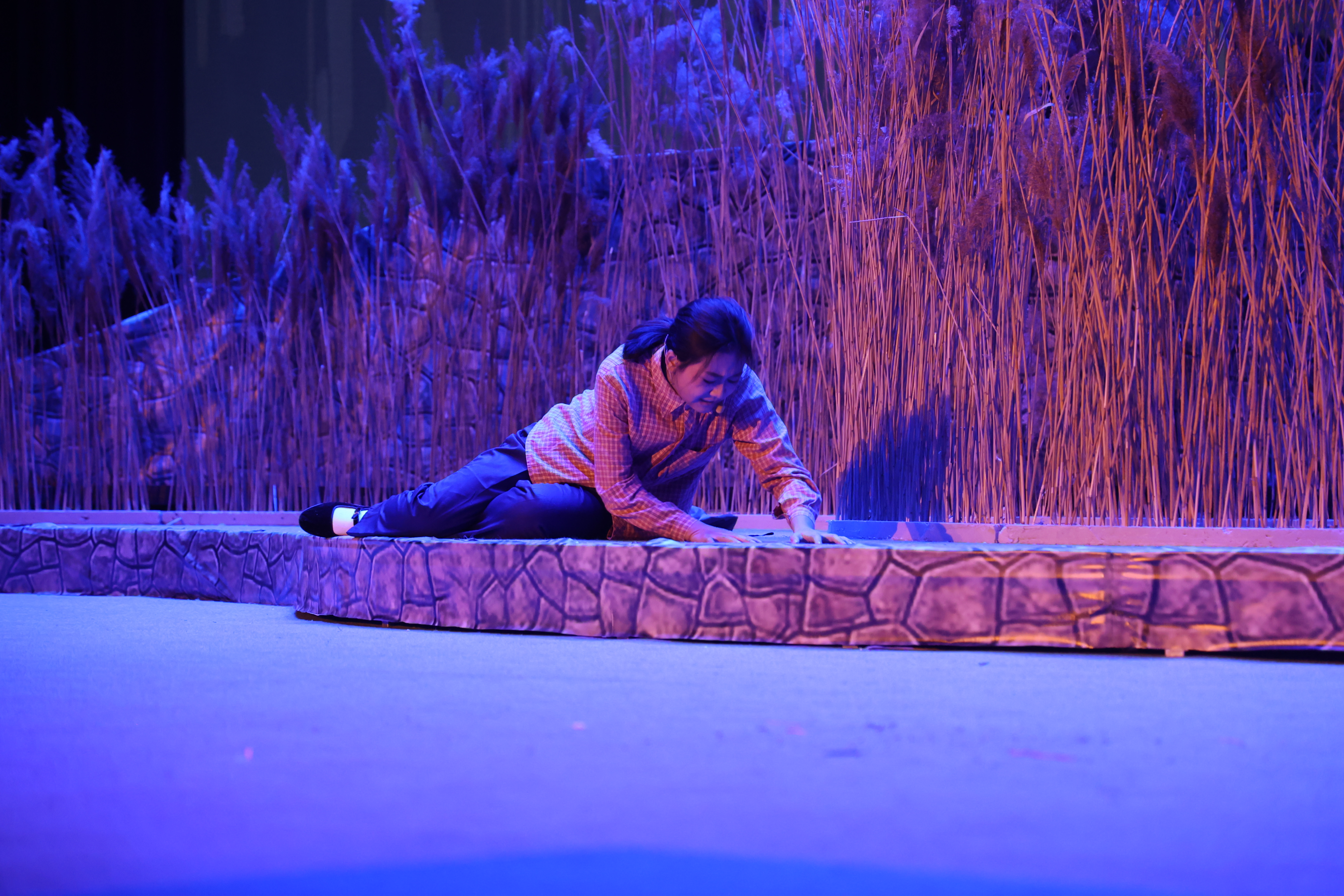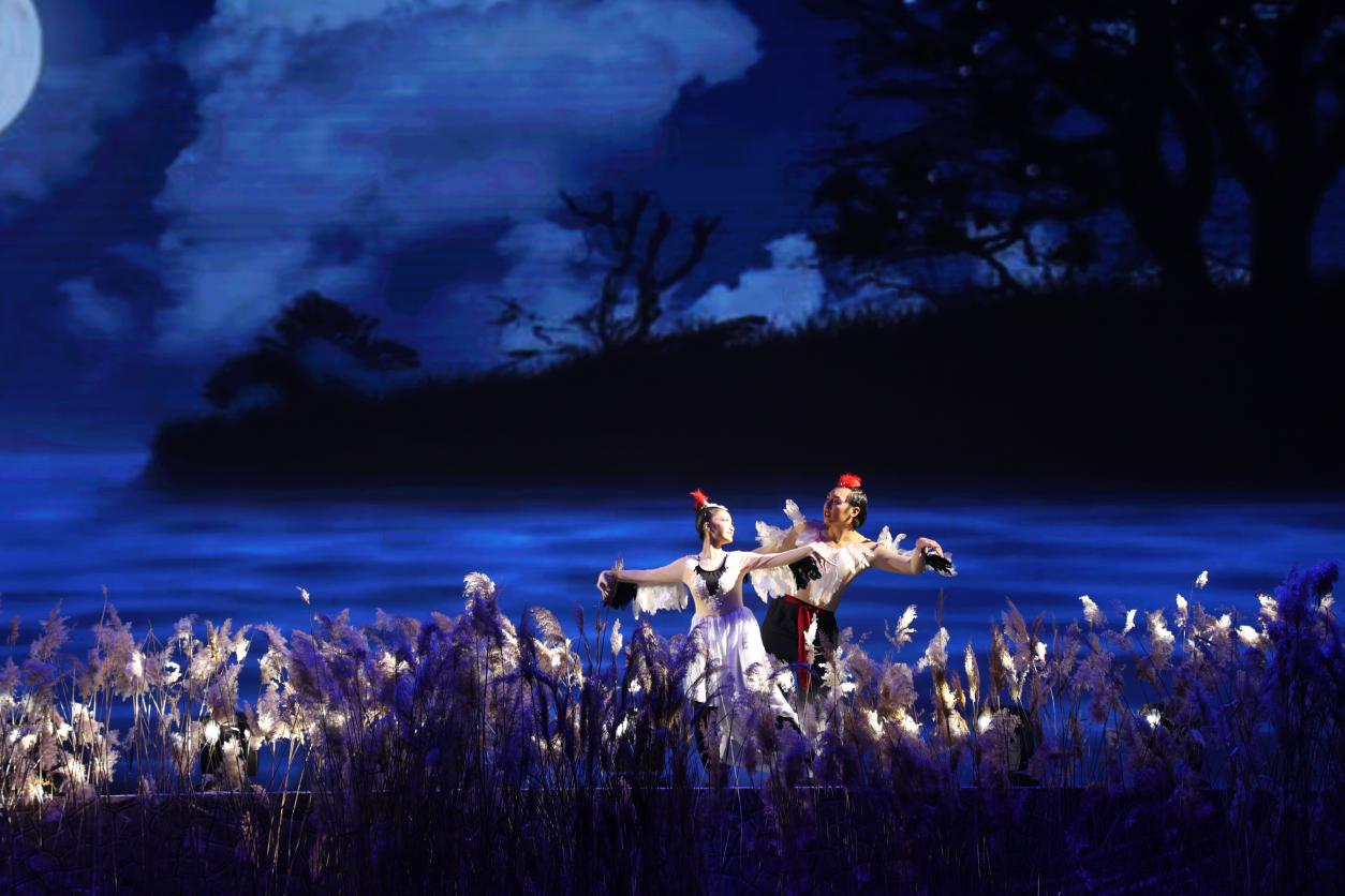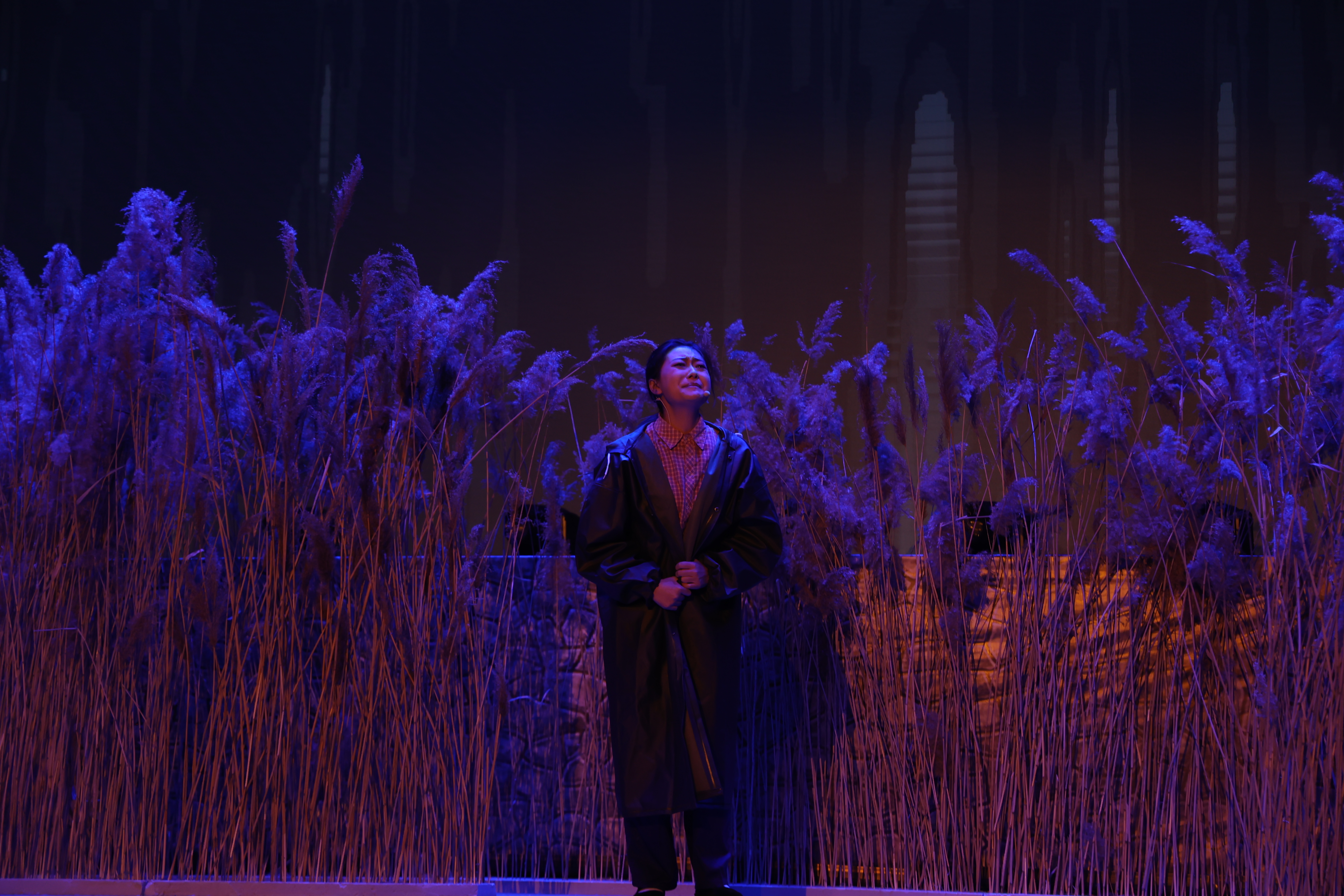 “走过那条小河,你可曾听说,有一位女孩,她曾经来过……”随着悠长空灵的歌声,演出正式拉开了序幕。一声声撕心裂肺的呐喊,一道道时隐时现的闪电,一簇簇飘摇摆动的芦苇荡,似乎将观众们又带回了36年前的那个雷雨交加的夜晚。