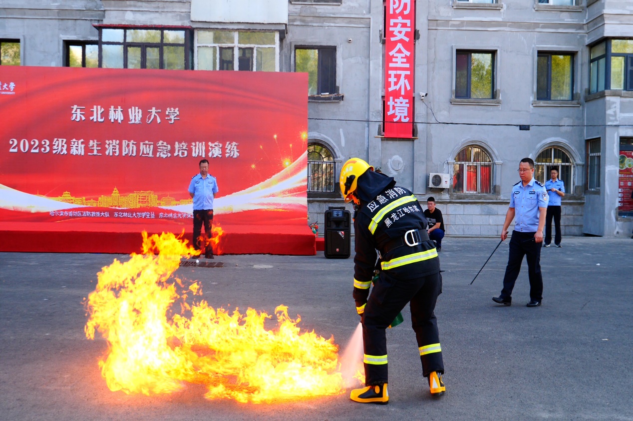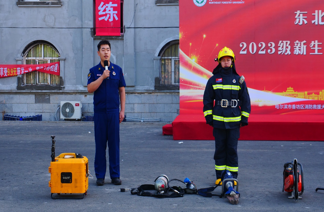 学校党委常委、副校长孙猛,学生处处长王博、保卫处处长李长松、宣传部副部长王乙参加演练活动。哈尔滨市香坊区消防救援大队协助参与培训,大队长纪中凯、副大队长毕胜进行专业指导。李长松主持演练活动。