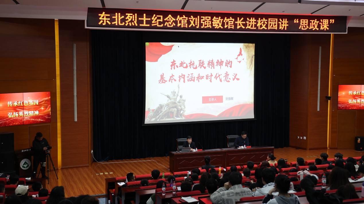 为深入学习贯彻党的二十大精神和习近平总书记关于教育的重要论述,加强“大思政课”建设,传承红色基因,弘扬东北抗联精神,汲取奋进力量,4月4日,在清明节来临之际,学校邀请东北烈士纪念馆馆长刘强敏走进课堂,为同学们讲授“东北抗联精神的基本内涵和时代意义”思政大课。学校党委副书记、纪委书记宋吉红出席会议,马克思主义学院部分教师和研究生以及16个学院的本科生代表共计400余人参会。报告会由马克思主义学院党委书记苏志刚主持。