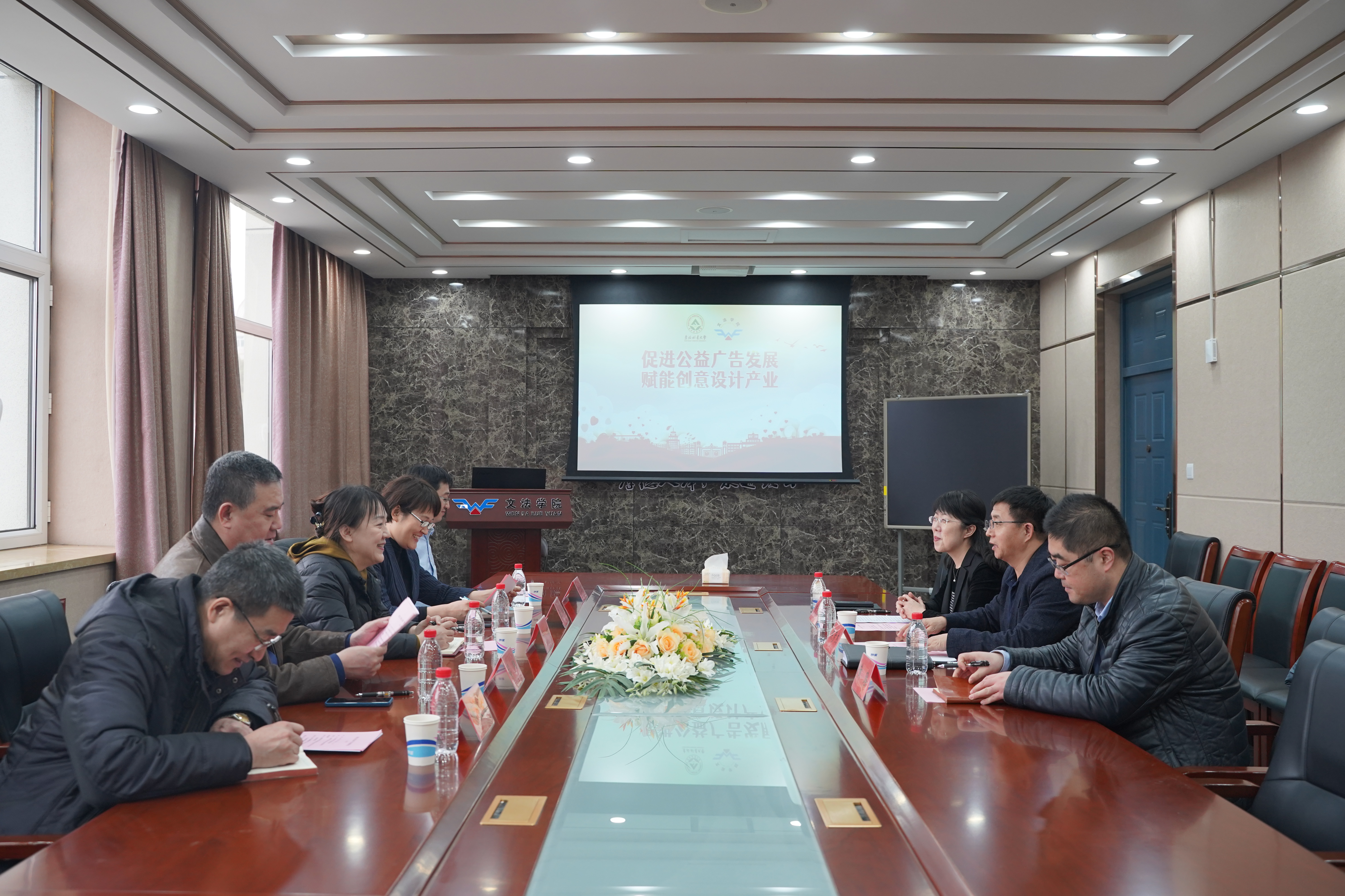 2023年3月7日14时,由省委宣传部牵头组织的黑龙江省公益广告工作座谈会在文法学院召开。省市场监管局广告处处长于红、省委宣传部文明创建处副处长云梅、省市场监督管理局广告处副处长司阳、省委教育工委宣传部四级调研员董良福、文法学院院长朱文玉、校党委宣传部副部长黄臻、广告学专业负责人宫立明出席座谈会。座谈会由文法学院党委书记侯彦杰主持。