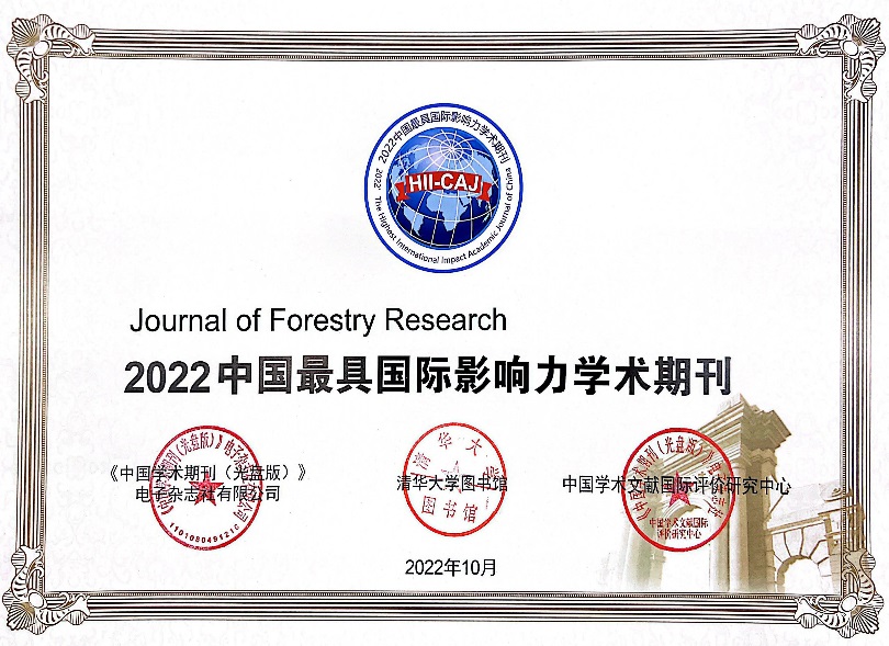 近年来,《林业研究(英文版)》注重期刊品牌建设,努力提升期刊学术质量和国际影响力,成效显著。2022年再次入选《科技期刊世界影响力指数(WJCI)报告》,位列林业学科Q1区;第8次入选“中国最具国际影响力学术期刊”(TOP 5%);期刊编辑胡彦波博士、徐涛博士分获“2022年度中国科技期刊卓越行动计划选育高水平办刊人才子项目—优秀编辑、优秀审稿人”。