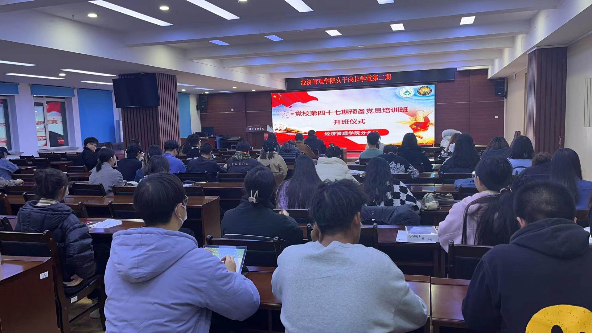 为深入学习贯彻习近平新时代中国特色社会主义思想,不断深化拓展党史学习教育,进一步教育引导广大新党员增强党员意识和党性修养,切实把思想和行动统一到学习贯彻党的二十大精神上来,根据学校党员教育管理有关工作部署,10月27日晚,党校第47期预备党员培训班于奥林楼101会议室正式开班。陈文慧为党校第四十七期预备党员培训班讲授专题党课。党委常委、党委组织部部长兼党校常务副校长高玉娟,党委学工部部长王博,团委书记李晶才出席开班式。开班式由党委组织部副部长李想主持。