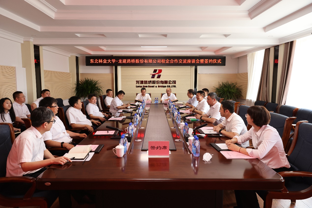 在校企交流座谈会上,龙建路桥股份有限公司党委书记、董事长田玉龙对翟雪峰一行表示欢迎,并简要介绍了公司的发展情况,回顾了校企合作的历程,对在公司任职东林校友的突出贡献给予了高度肯定。田玉龙指出,东北林业大学的毕业生踏实肯干、业务能力强,是龙建路桥股份有限公司的骨干力量,在重大项目攻关、重大工程建设中表现突出,希望学校加大推介力度,企业自身同时创新人才引进机制,探索校企联合培养人才模式,吸引更多的东林优秀毕业生来龙建路桥股份有限公司发展。