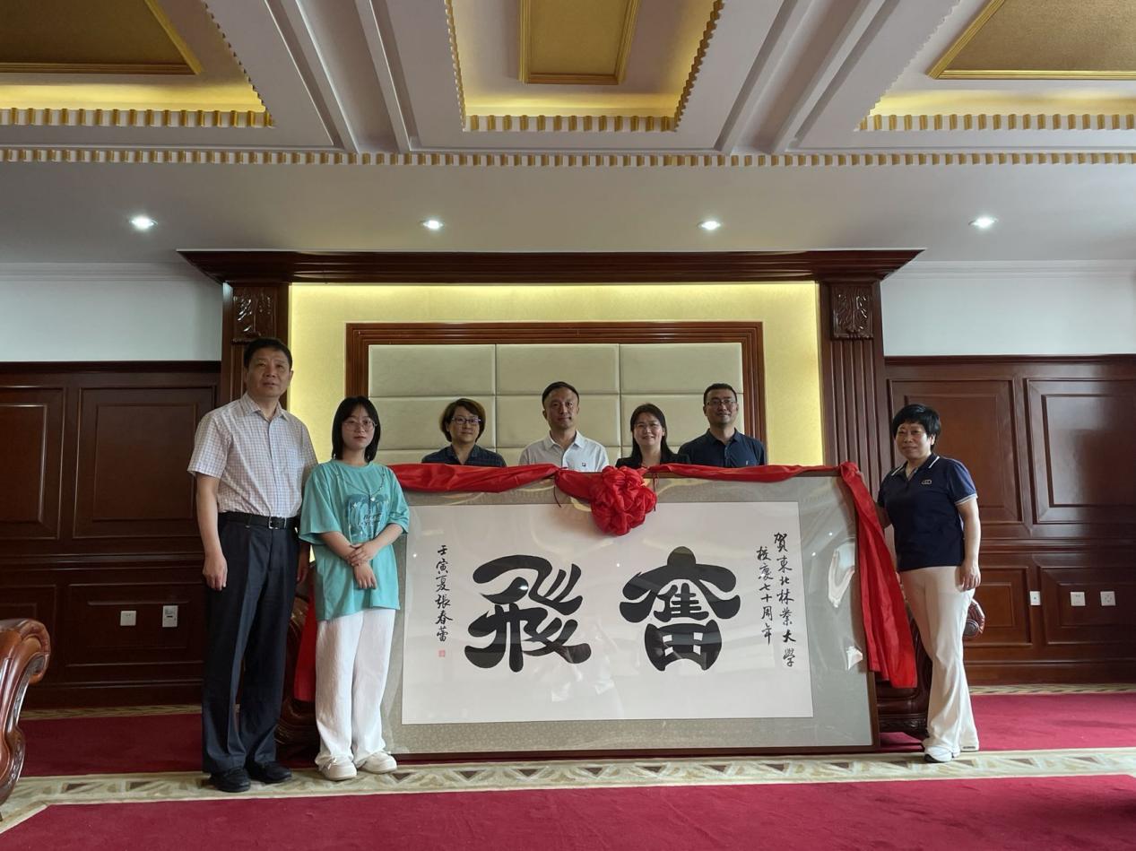 日前,校长李斌接受了理学院信息与计算科学专业2019级2班学子张春蕾为校庆创作的“奋飞”书法作品。张春蕾表示:“三年前我获得学校的新苗资助顺利入学,三年后终于有机会用书法表达对学校的感激之情。”