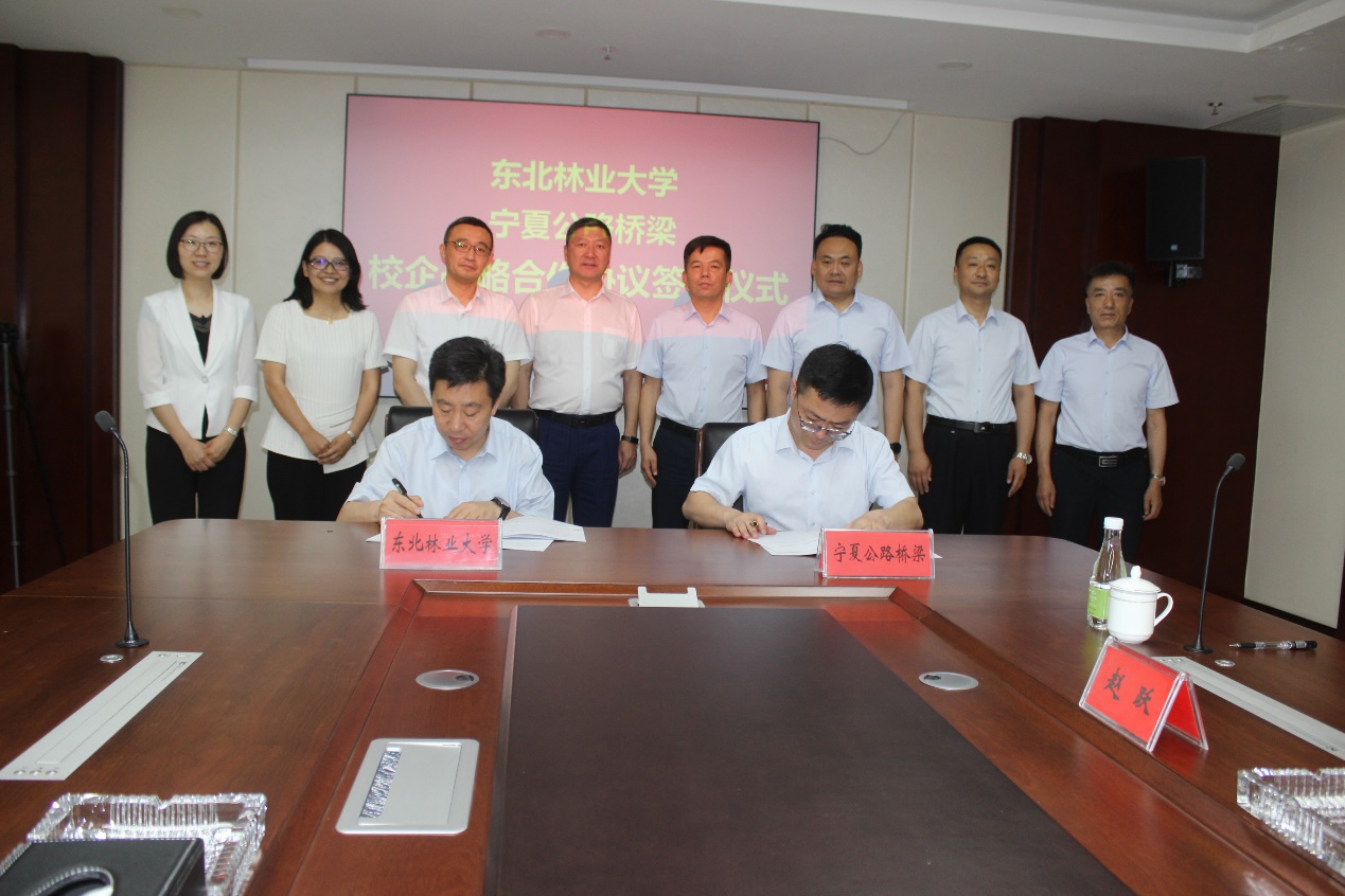 6月22日上午,刘守新副校长一行来到宁夏公路桥梁建设有限公司参加校企合作交流座谈会,公司党委书记、董事长陈国权对刘守新副校长一行到访表示欢迎并简要介绍了公司的发展情况,重点介绍了东林毕业生的优秀表现;刘守新副校长简要介绍了学校的办学情况,对公司长期以来对东北林业大学的支持和对校友的培养表示衷心感谢;校企双方领导共同就毕业生就业、校企战略合作和研究生实习创新实践就业基地建设等相关事宜进行了交流;刘守新副校长与公司党委书记、董事长陈国权共同签署《校企战略合作协议》和《研究生实习创新实践就业基地共建协议》,共同代表校企双方互授“学生实习创新实践就业基地”和“人才培养基地”牌。