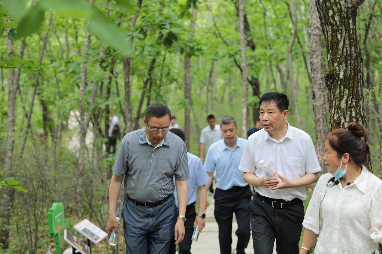 在加格达奇林业局翠峰林场,李斌一行考察了温室引种桃树、苹果树等经济树种栽培效果,探讨未来经济效益;参观了大棚地栽灵芝生长情况,就灵芝孢子粉、灵芝子实体高值化利用等给出科学建议;实地踏查了翠峰林场天台山景区规划与建设成果,针对林场景区合理开发利用,林场生态保护、林区防火、林分结构优化等问题进行了深入探讨,并给出指导性意见和建议。