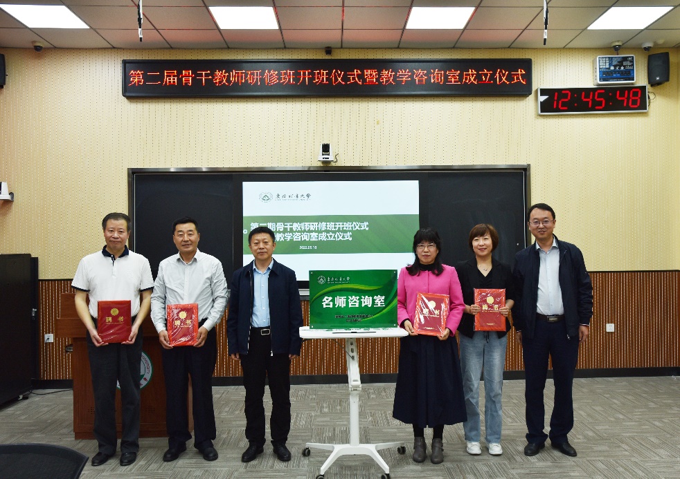 翟雪峰副校长为名师咨询室揭牌,并为名师咨询室首批特聘专家颁发了聘书。名师咨询室的成立标志着我校教学咨询工作正式开展。