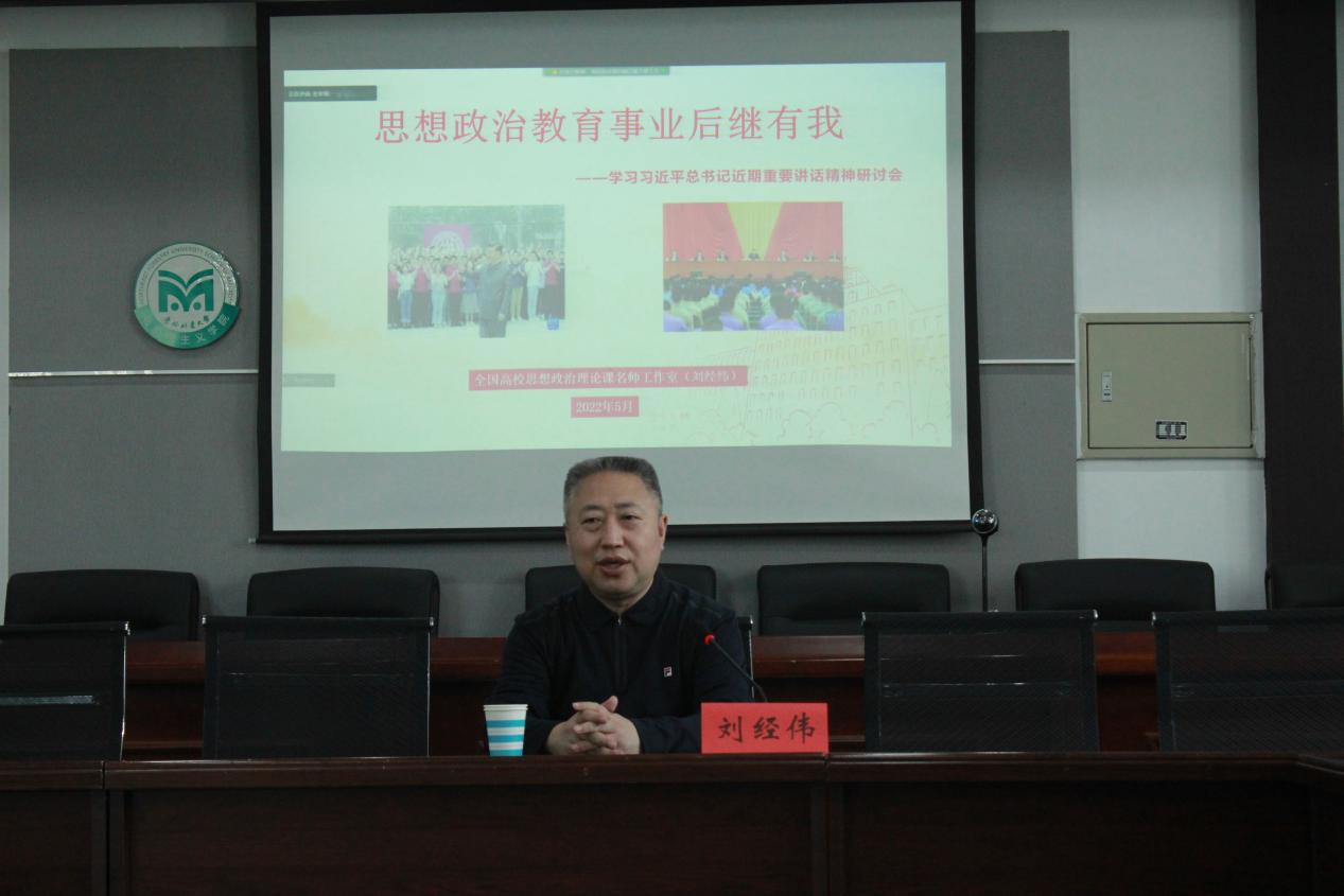5月4日,全国高校思想政治理论课名师工作室(刘经伟)举办了“思想政治教育事业后继有我——学习习近平总书记近期重要讲话精神”主题研讨会。研讨会由全国高校思想政治理论课名师工作室负责人刘经伟教授主持,会议采取线上线下相结合的形式召开,全国10余所高校思政课青年教师和马克思主义理论学科博士、硕士研究生参加会议。与会的高校思政课教师、研究生围绕习近平总书记在中国人民大学考察时的重要讲话和习近平总书记在庆祝中国共青团成立100周年大会上的重要讲话,分享了自己的学习体会。