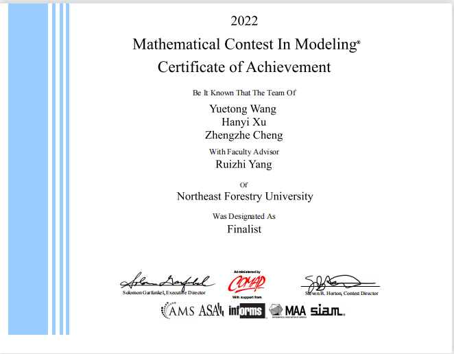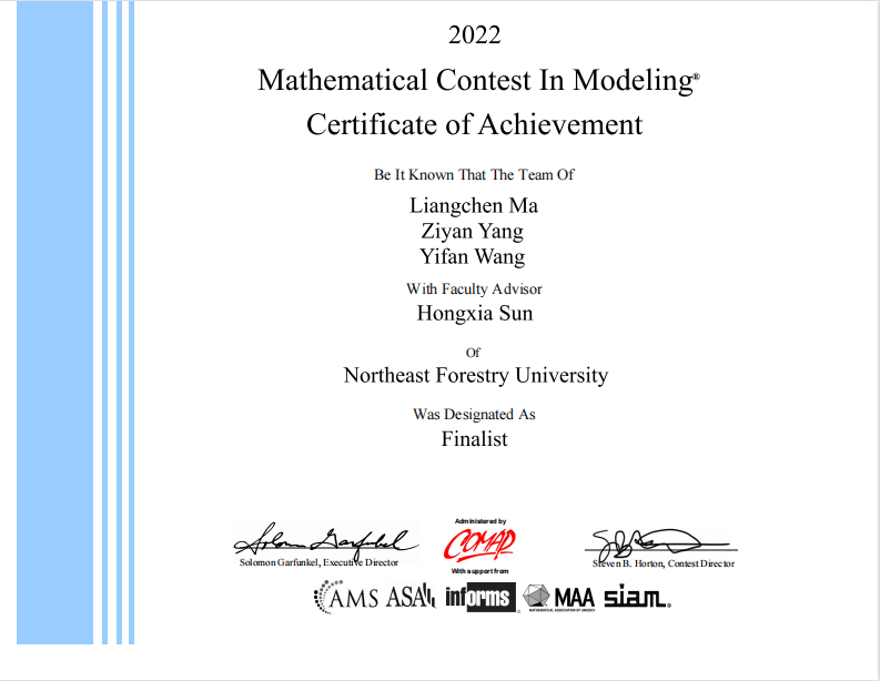 近日,2022年美国大学生数学建模竞赛成绩陆续揭晓,我校学生凭借扎实的专业知识、出色的英文表达能力以及团结协作精神斩获特等奖提名(Finalist)4项,优异奖(Meritorious Winner)4项,荣誉奖(Honorable Mention)16项,取得近年来的最好成绩。