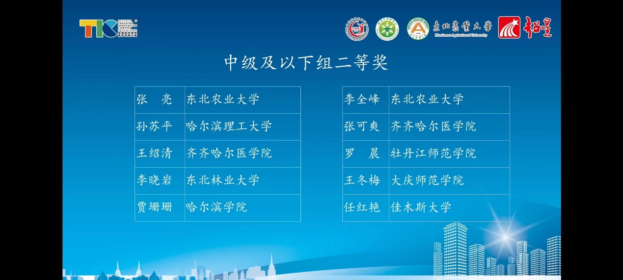 5月7日至8日,第二届黑龙江省高校教师教学创新大赛暨第二届全国高校教师教学创新大赛(龙江赛区)选拔赛在线上举行。来自全省38所本科高校的205名教师(团队)参加初赛,70名教师(团队)入围决赛。我校推荐的6名教师均在比赛中获奖。机电工程学院宋其江荣获中级及以下组一等奖(第一名),并将代表黑龙江省参加国赛;材料科学与工程学院陈文帅荣获正高组二等奖;林学院张韫荣获副高组二等奖;生命科学学院李晓岩荣获中级及以下组二等奖;工程技术学院李琛、园林学院李羽佳荣获中级及以下组三等奖。我校荣获优秀组织奖。