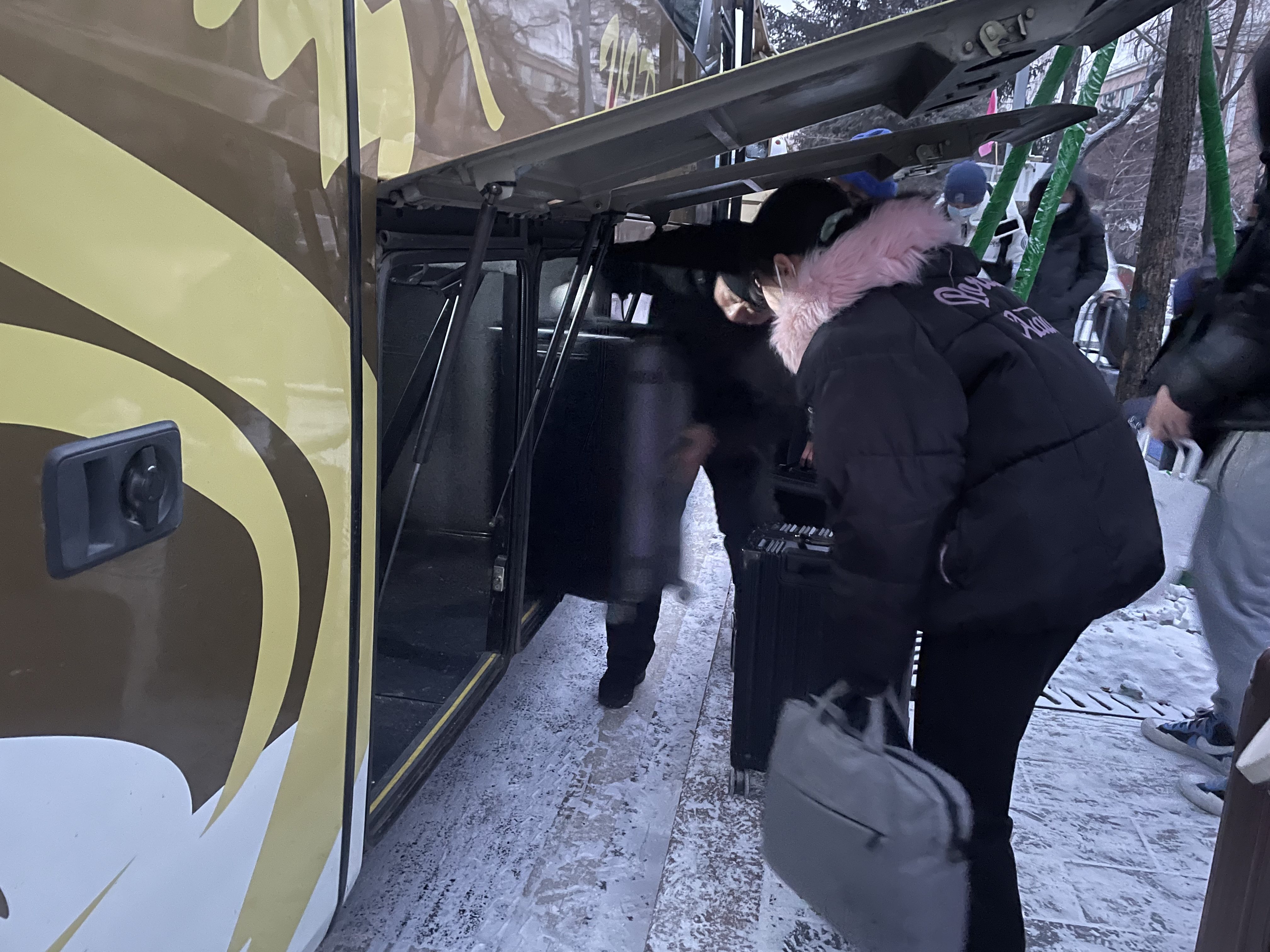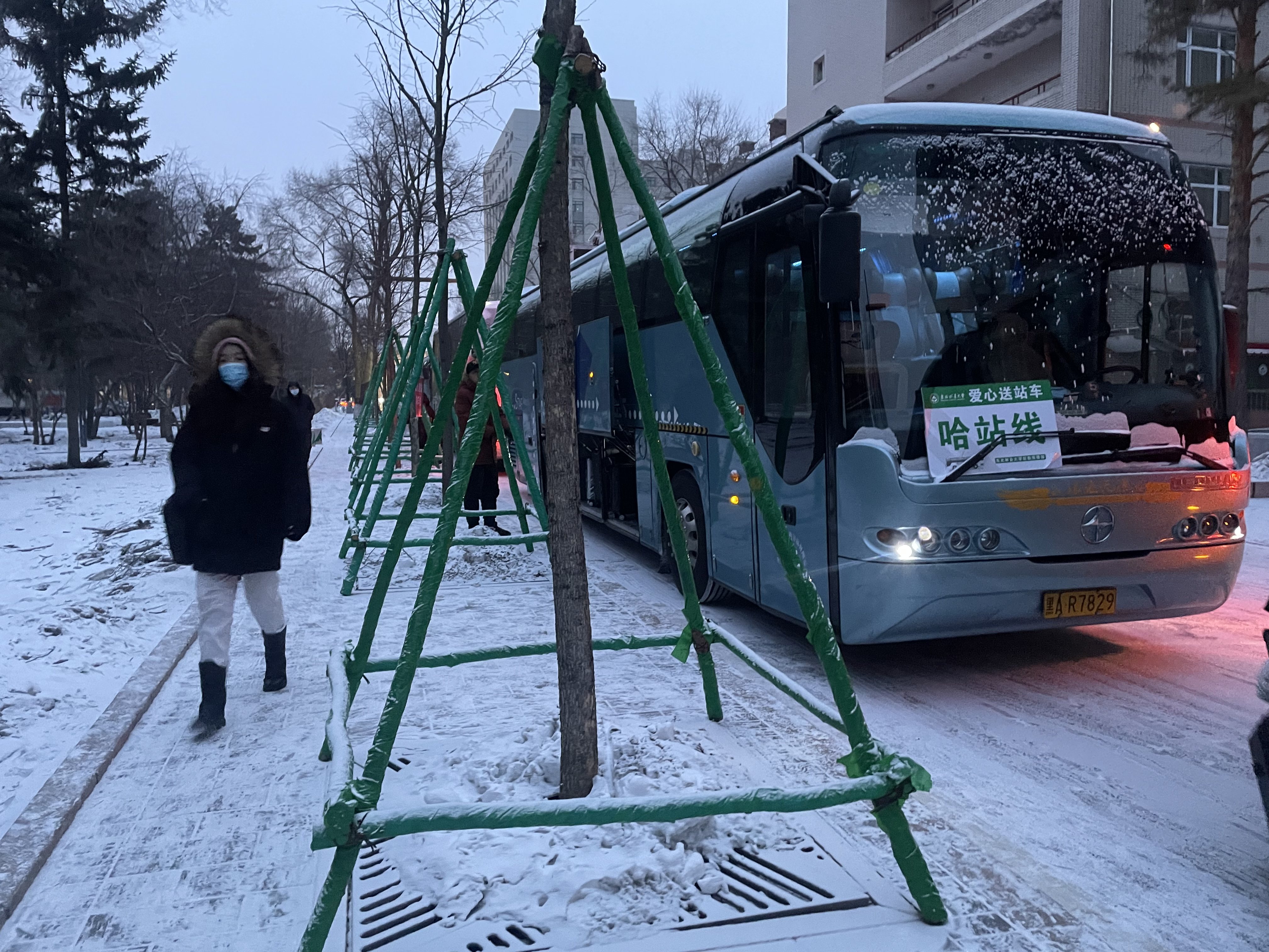 从2021年12月28日至12月31日,每天早7点到晚8点安排送站车辆,整点前往哈站、西站,3个小时一班前往机场。四天下来,班车司机长达52个小时的出车时间,工作人员也要寒风中上岗二十多个小时。早间、夜间气温低到零下二十七八度,风雪中,他们的眉毛、睫毛挂上了白霜,手冻得通红,但是他们依然义无反顾地坚守在岗位上。