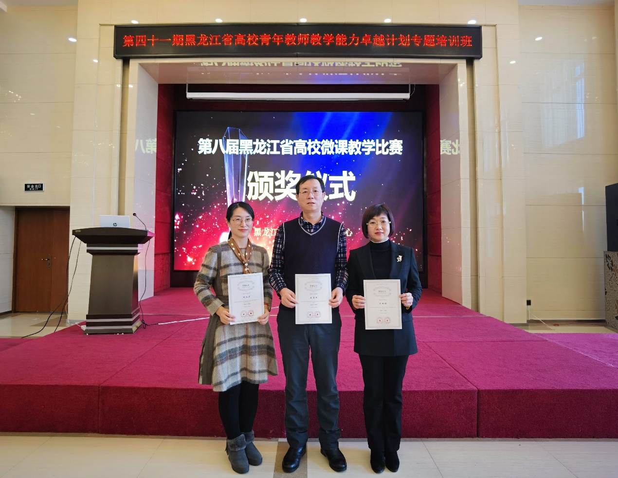 近日,黑龙江省高校师资培训中心举行了第八届黑龙江省高校微课教学比赛和第八届黑龙江省高校青年教师多媒体课件制作大赛获奖教师颁奖仪式,我校林学院王占斌老师参赛作品《蘑菇的生活史》、马克思主义学院刘甜甜老师参赛作品《“解放思想 实事求是”思想路线的时代价值》获得微课教学比赛一等奖,机电工程学院于迪老师参赛作品《机械工程制图基础(CAD)》获得多媒体课件制作大赛二等奖,林学院韩冬荟老师参赛作品《森林气象学》获得多媒体课件制作大赛三等奖。