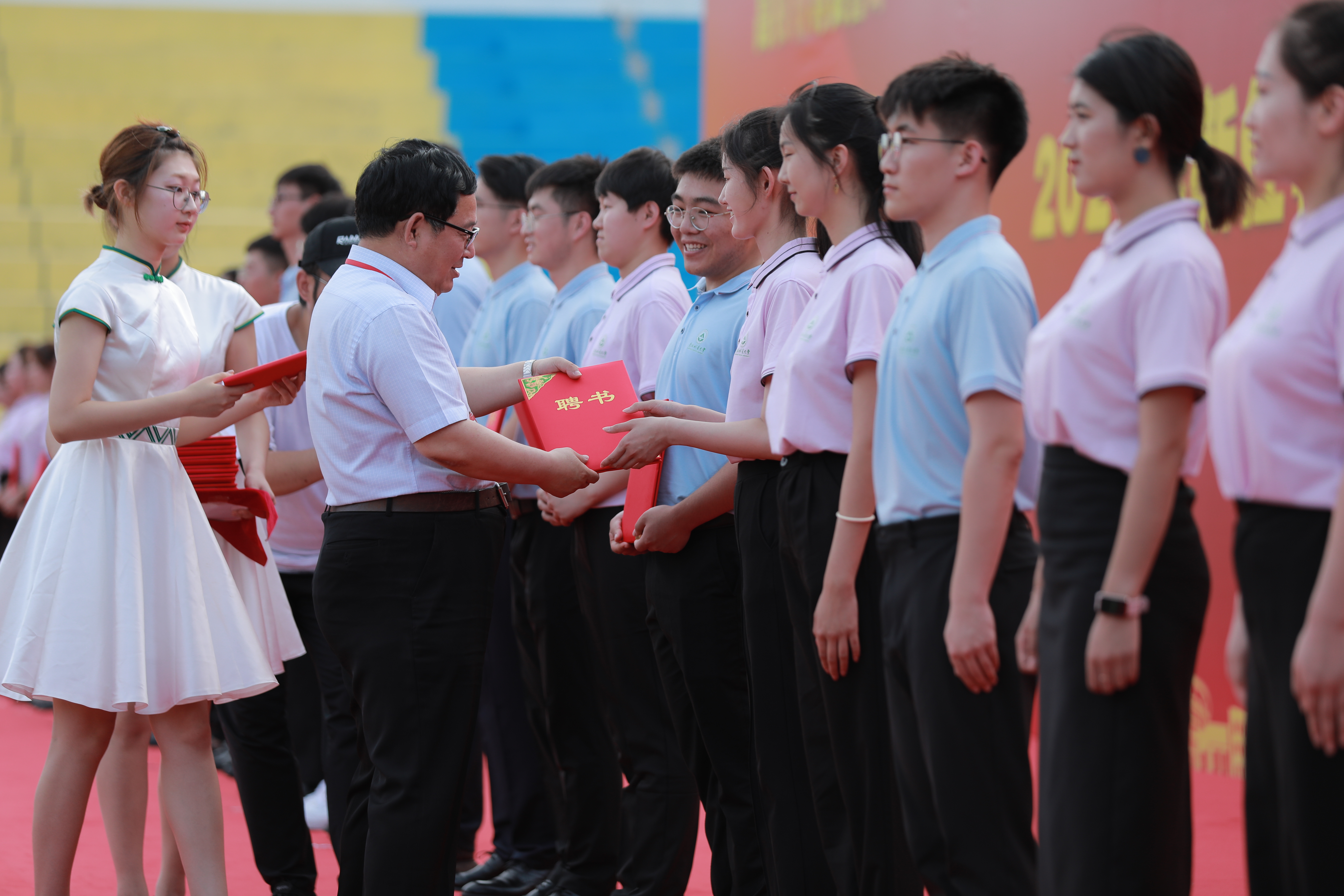 党委学工部部长王博宣布了新入职辅导员的分配情况。随后15名专职辅导员和14名“2+3专职辅导员”列队从象征职业起点的屏门中走出,走过寓意着光荣与梦想的红毯,开启职业生涯的新征程。