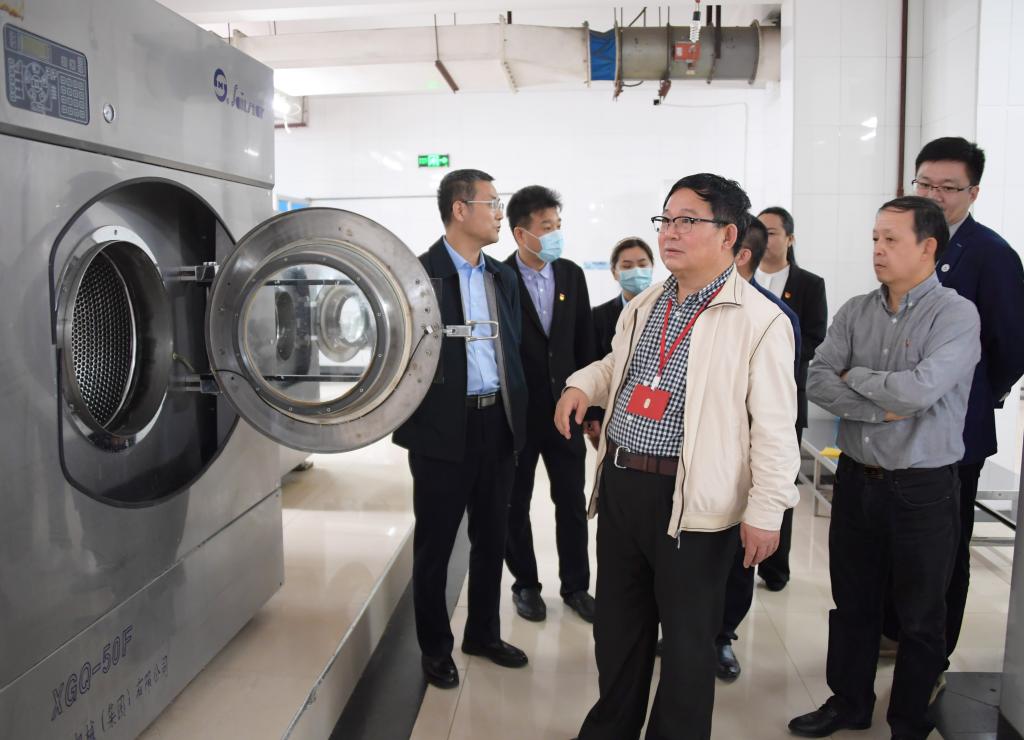 在研究生(五号)公寓,张书记重点查看洗衣房、大学生心理健康教育中心等场所,并随机走访了部分博士生宿舍。