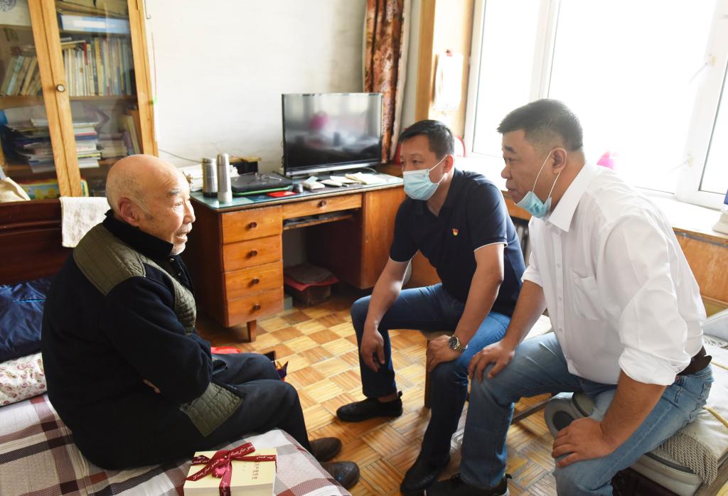 离退休工作处党委工作人员耐心询问朱政贤老人的身体情况