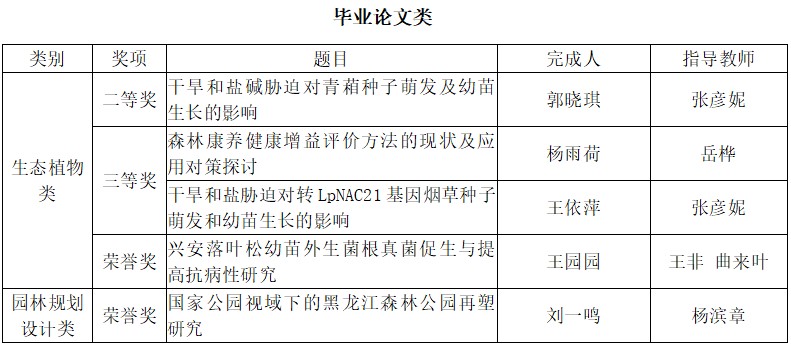 东北林业大学园林学院学生获奖作品一览表