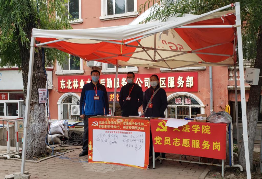 “我是党员我先行,志愿服务做先锋。群防群控我助力,和谐校园更美丽!”为落实《东北林业大学在常态化疫情防控中持续发挥基层党组织和党员作用的实施方案》,文法学院师生党支部积极投身校园疫情防控志愿服务。