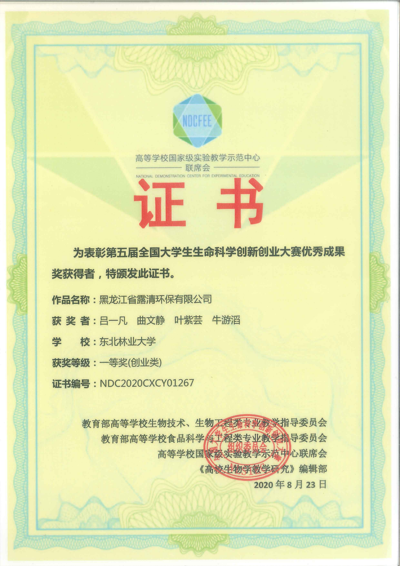 由教育部高等学校生物技术、生物工程类专业教学指导委员会,教育部高等学校食品科学与工程类专业教学指导委员会等承办的第五届全国大学生生命科学创新创业大赛于日前举办。在与吉林大学、中国农业大学、华东师范大学、华南理工大学等国内众多知名高校的同台竞技中,由我校赵敏老师带队指导的生命科科学学院和经济管理学院本科生吕一凡、曲文静、叶紫芸、牛游滔组成的队伍表现不俗,取得了全国一等奖的优异成绩!