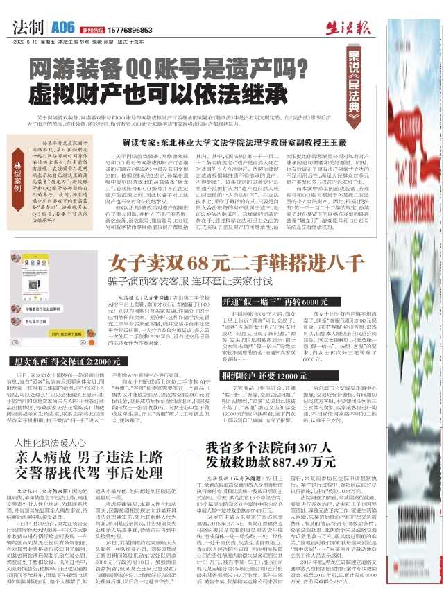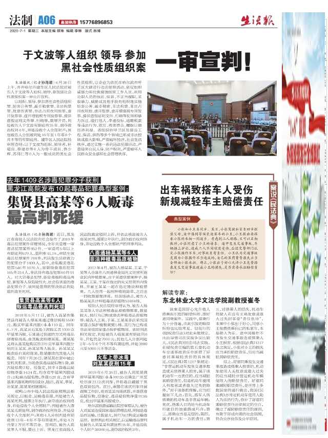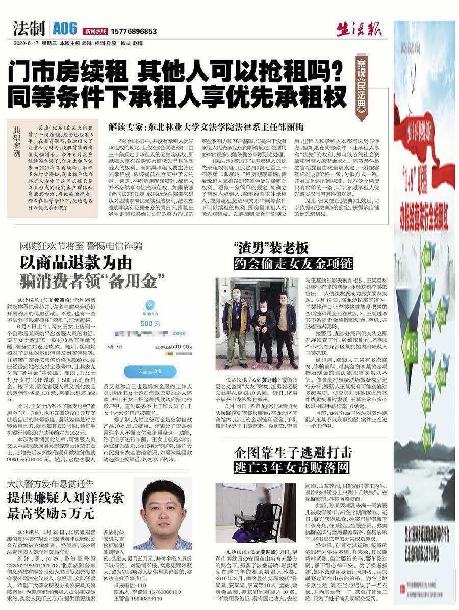 法学专业的邹丽梅老师接受了《黑龙江日报》“专家谈民法典”的专访,题目为《回应时代呼声反应百姓利益》的报道被刊发,同时在《生活报》解读了民法典《合同编》设定承租人优先承租权制度。她讲到,这是是一项符合党中央提出的建立租购同权住房市场的要求、保护承租人利益的新制度;项定宜和赵权老师解读了《物权编》中居住权制度的设立、内容和消灭,指出居住权制度是为贯彻党的十九大提出的加快建立多主体供给、多渠道保障住房制度要求的制度;王玉薇老师解读了《继承编》扩大继承范围的规定,指出《民法典》修改后扩大了遗产的范围,游戏装备、游戏账号、微信账号、QQ账号和数字货币等网络虚拟财产都概括其内,虚拟财产可纳入继承;孟琦老师关注了《人格权编》对民事主体隐私权的规定,指出《民法典》第一次明确规定了公民隐私权被侵犯的行为类型,加强了人格利益的保护,偷拍他人私密空间及活动 属侵犯隐私权;崔冬老师解读了《侵权责任编》中好意同乘赔偿责任减轻的相关规定,指出我国《民法典》肯定机动车使用人助人为乐的行为,弥补了好意同乘赔偿责任法律规定的空白,确立了减轻赔偿责任的规则,有助于形成向善的社会氛围,符合公序良俗及公平原则。