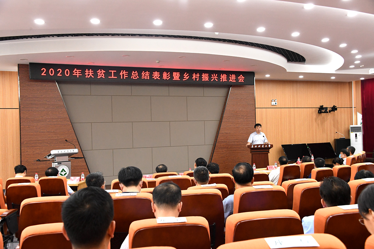 7月17日下午,我校2020年扶贫工作表彰暨乡村振兴推进会在奥林学院101会议室举行。会议主要表彰2019年定点扶贫先进团队、先进个人及扶贫工作优秀论文获奖代表,在总结2019年扶贫工作基础上简要回顾我校参与精准扶贫工作历程,全面推进学校2020年扶贫工作计划,部署定点扶贫转段乡村振兴战略,实施我校对接县域(林业局级)经济社会产学研一体化工作安排。