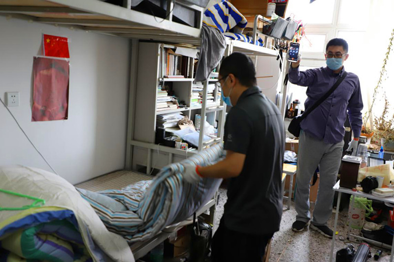 辅导员董天贺老师经过精心的准备,保证了打包行李各项工作有条不紊,他说“此刻五味杂陈,四年有太多的酸甜苦辣,就像我在满地的“垃圾”中找到这一毛一毛的硬币,这是四年的积累,那一刻激动不已,虽然钱不多,但却溢于言表,因为帮学生找到了。或许这就是信任!”或许时间太久,很多同学已记不准东西放在哪里,老师们一遍遍细致询问,耐心找寻;或许同学们又突然想起有什么东西还在工作室,老师们毫无怨言,欣然折返,李羽佳老师笑说,“最高纪录一个娃装了17个袋子……”。张捷老师克服身体的不适,在视频里饱含深情的让同学们放心,“再苦再累也愿意,希望毕业生们能够牢记园林使命,祝福大家前程似锦!”点点滴滴,毕业生同学们看在眼里,感恩在心,16级林悦同学发朋友圈讲到,“感谢老师们帮我们收拾行李,真的太辛苦了。也真的太匆匆就要和1619宿舍说再见了,希望大家以后都会越来越好”。