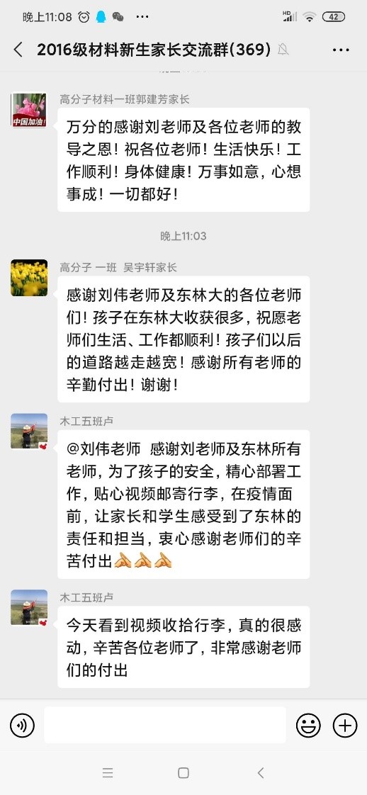 毕业生家长也纷纷给老师们发来信息:疫情面前,作为家长我们再次感受到了东林的大爱与担当,既有坚定的责任意识,又有温情的师者之爱,我很骄傲我的孩子一生烙刻东林印记。