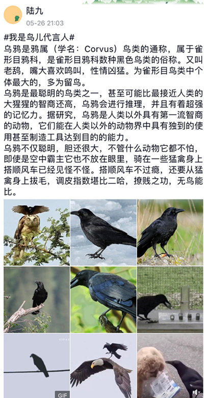 本届“爱鸟周”分会场系列活动先后开展了“小野带你看世界”自然课堂、我是鸟儿代言人等11项爱鸟护鸟主题活动,吸引了省内近千名大中小学生参与其中。自然课堂版块中的“建章讲堂”、“博雅讲坛”线上公开课面向社会公众,邀请了学院鸟类专家许青、王槐和优秀校友何嘉乐等嘉宾分别从小鸟宝宝诞生、认识鸟类之美和鸟类保护现状等方面分享了鸟类前沿知识、科普了爱鸟护鸟技术;学生志愿者结合学院与哈尔滨市四十九中学合作的校本课,开展了科普Vlog、手绘鸟类标本制作教程、爱鸟护鸟设施制作等活动,乘“云”上之风,使本届“爱鸟周”宣传活动愈加专业,保护鸟类知识普及范围愈加广泛。