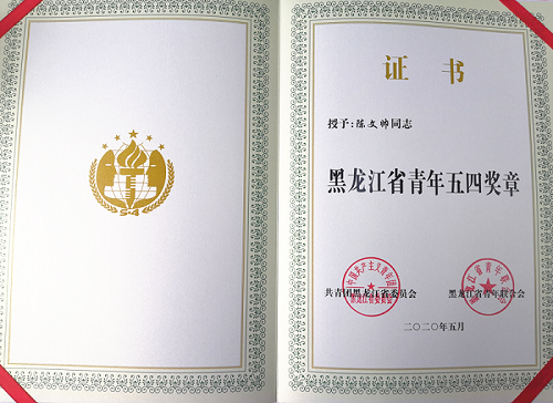 4月30日,第22届“黑龙江省青年五四奖章”评选结果揭晓,我校材料科学与工程学院教授、博士生导师陈文帅被团省委、省青联授予“黑龙江省青年五四奖章”,全省共有43名个人获此殊荣。同时,我校外国语学院2016级本科生周桐入选2019年度“黑龙江省向上向善好青年”,获“勤学上进好青年”荣誉称号,全省共有40名青年获得表彰。