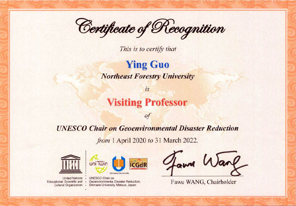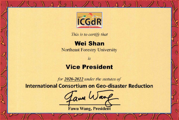 我校在气候变化与多年冻土区环境地质灾害研究方面成果引起国际同行关注,是ICGdR创始会员单位之一。我校单炜教授、郭颖博士是ICGdR创办的国际学术杂志——《Geoenvironmental Disasters》的编委,也是联合国教科文组织地球环境减灾教席(UNESCO Chair on Geoenvironmental Disaster Reduction)特聘教授。