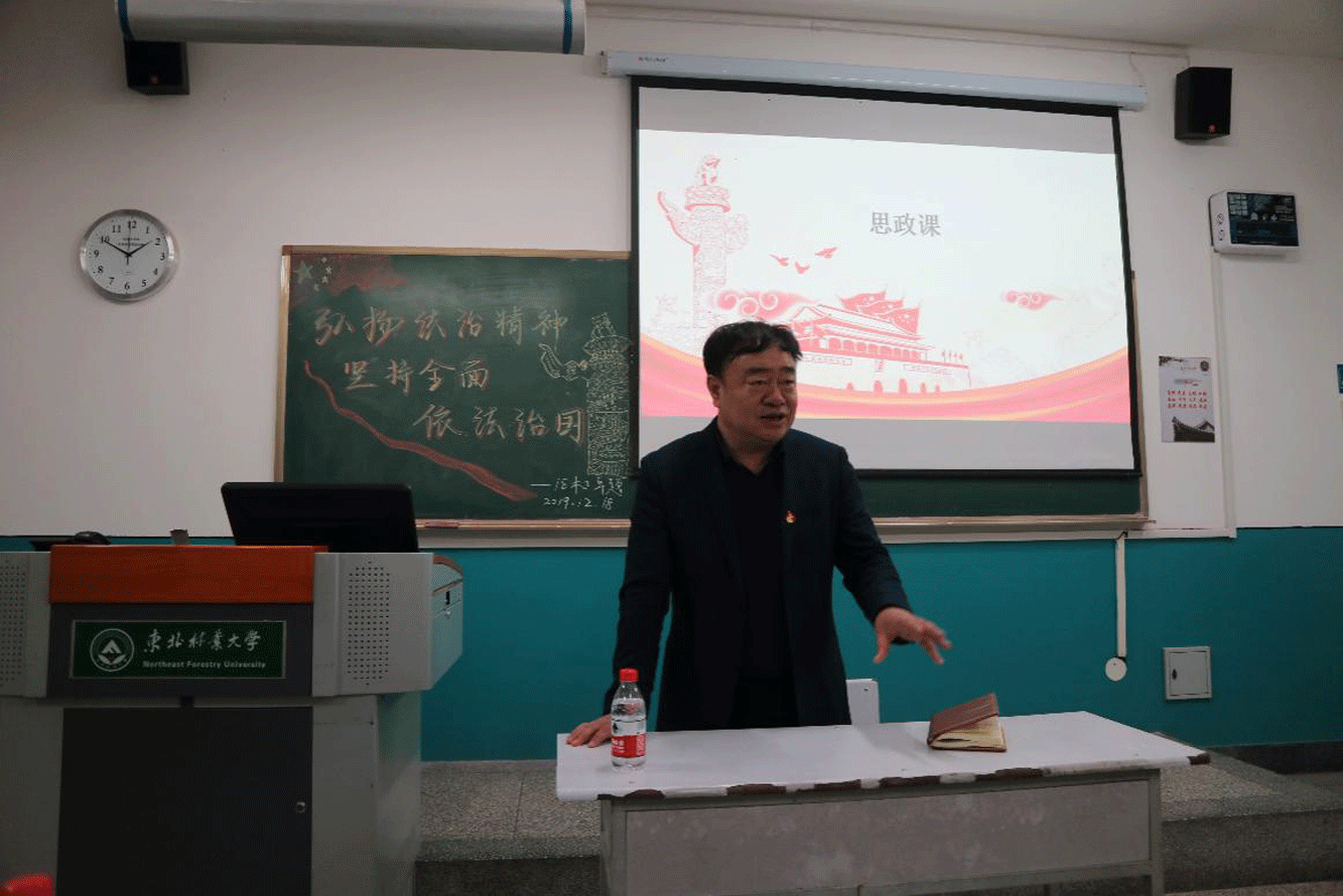 12月18日下午,孙猛副校长走进2018级木材科学与工程卓越班,来到锦绣楼302教室,参与班级开展的“弘扬法制精神,坚持全面依法治国”主题班会活动,并以“立志成才”为主题为同学们讲了一次生动的思政课,一同参加的还有材料科学与工程学院2018级木材科学与工程卓越班二班班主任张志军老师、材料科学与工程学院2018级辅导员苏杭老师。