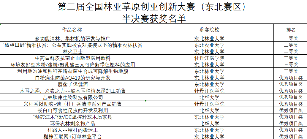 本次参赛的9支东北林业大学代表队均取得骄人成绩,充分表现了我校学子在农林领域的创新创业探索能力。