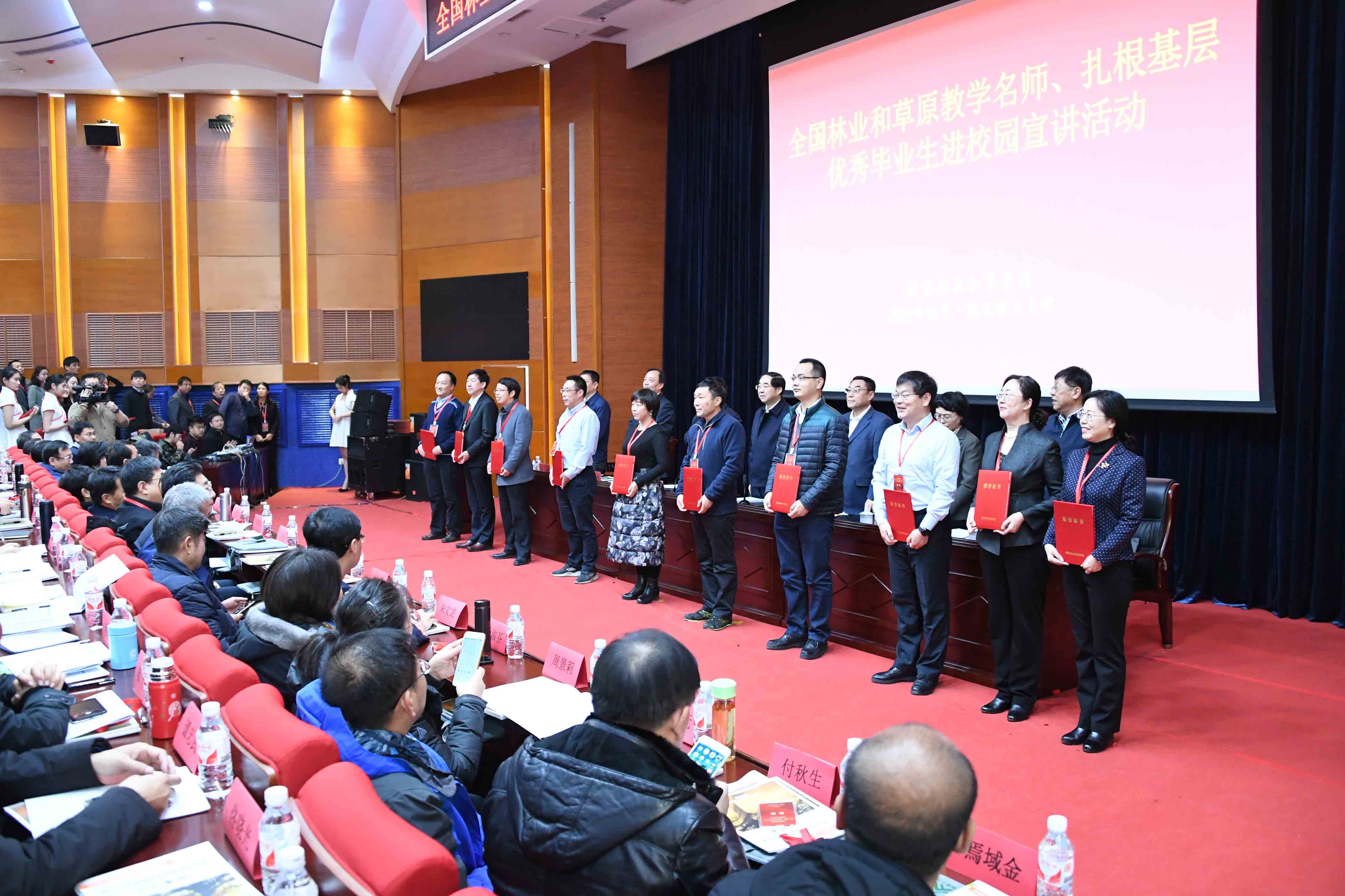 与会领导为全国林业和草原教学名师、扎根基层优秀毕业生颁发荣誉证书