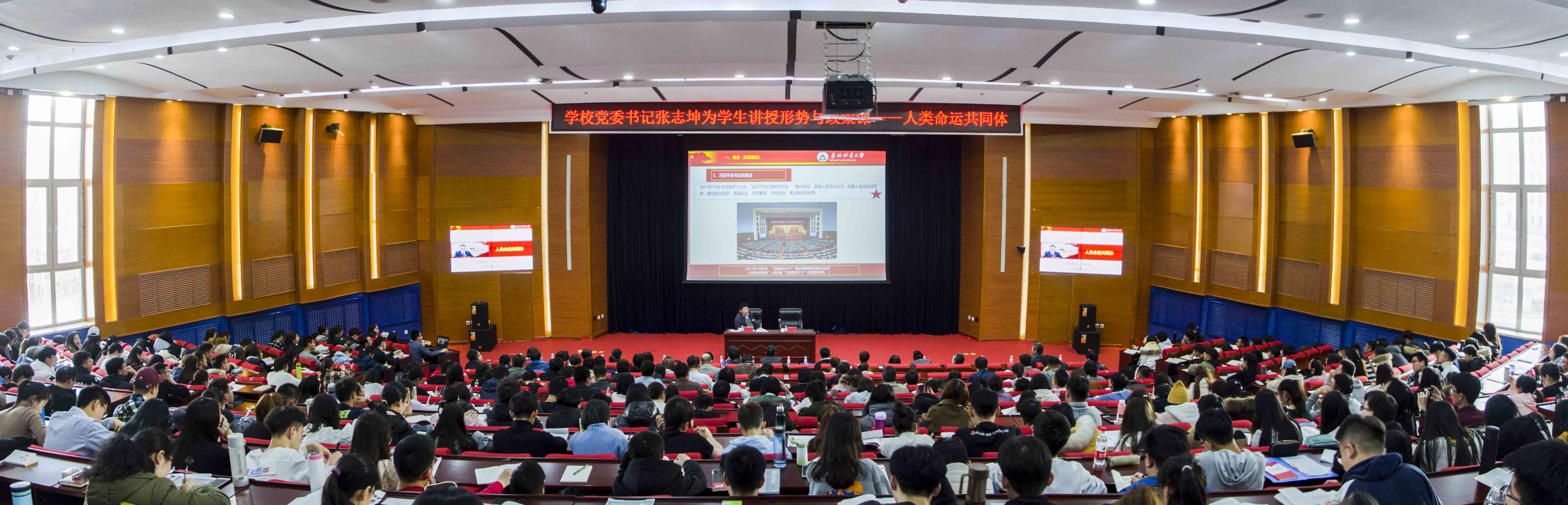 为推动“不忘初心、牢记使命”主题教育不断深入,激发广大师生的爱国之情和报国之志,11月13日下午,学校党委书记张志坤深入一线,以《人类命运共同体》为题,在成栋楼会议厅为全体学生思政工作干部和学生党员代表上了一堂生动的形势与政策课。