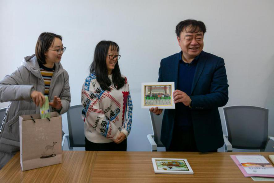 座谈会前,班长曹磊为孙猛副校长颁发《材料学院一级班主任聘书》,团支部书记亢潇婉把“时光胶囊”——每名同学写给四年后自己的一封信交给孙猛副校长。同学们还带来了由全班同学在校园里亲手挑拣的叶片制作而成的树叶画《金秋东林》,并用自己设计制作的班级成长历程微视频,向孙猛副校长汇报在德智体美劳全面发展方面所取得的阶段性成绩。多才多艺的学生们还录制了自己作词和演唱的班歌《亲爱的卓越人》。