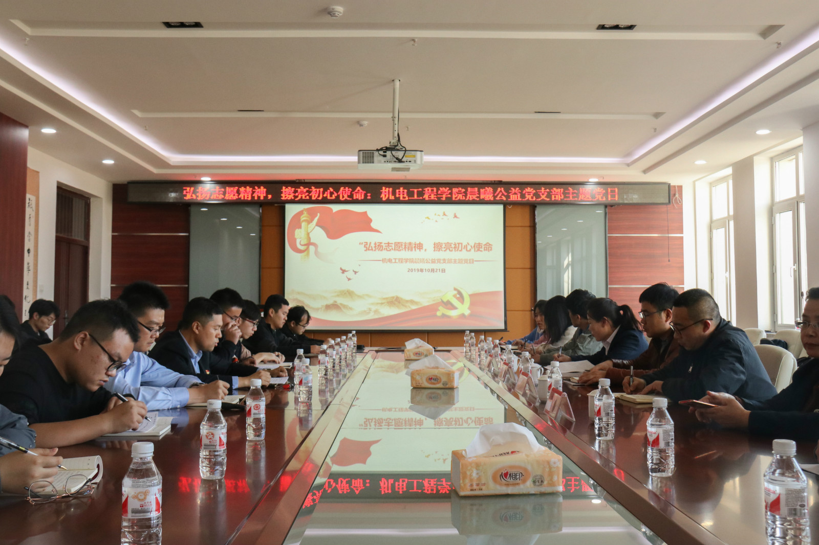 “让志愿服务成为一种更有意义、富有远见的生活方式,用东林人的实际行动打造奋进支部,写好奋进之笔,奏响奋进凯歌。”10月21日下午2时,机电工程学院晨曦公益党支部在成栋楼713会议室,开展了一场别开生面的主题党日活动,支部成员、学院毕业生党员、入党积极分子、志愿者代表共计30余人向全校各基层党支部发出倡议——号召全校师生党员,积极投身党建引领下的志愿服务,更好践行初心使命。教育部“不忘初心、牢记使命”主题教育第五巡回指导组成员梁建莅临现场,全程参与。学校党委组织部副部长于鹏、哈尔滨香坊区文政街道林大社区党委书记兼主任朱艳萍、哈尔滨天赐老人公寓主任张蓓一同参加。活动由机电工程学院党委书记王佳彤主持。