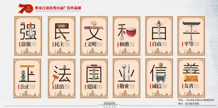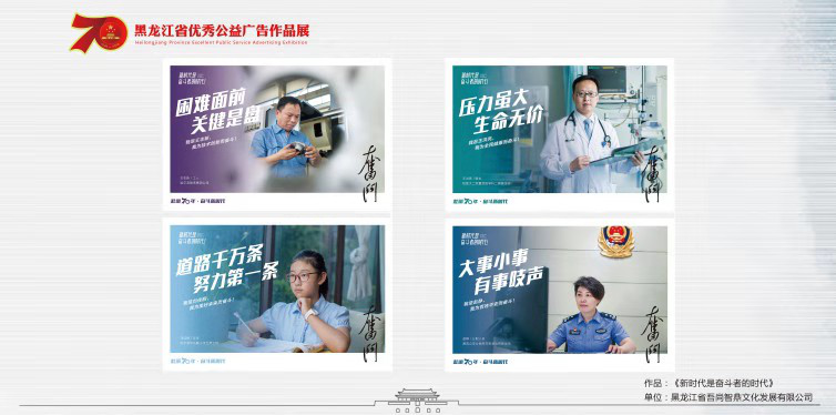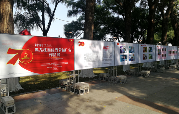 展览将持续至10月7日,集中展示2019年黑龙江省优秀公益广告作品评选获奖的160余张平面公益广告作品。作品涵盖庆祝新中国成立70周年、社会主义核心价值观、脱贫攻坚、乡村振兴、文明创建、绿色环保、勤俭节约、志愿服务、文化传承、孝老爱亲、关爱弱势群体等主题。