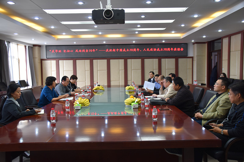 9月19日,为了庆祝新中国成立70周年、人民政协成立70周年,我校举办以“庆华诞 忆初心 风雨同舟70年”为主题的座谈会,党委副书记、纪委书记王玉琦,党委常委、党委统战部部长高玉娟,党委统战部副部长李文秋及历任各级政协委员参加了座谈会。