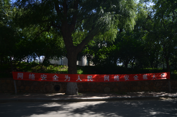 活动期间,我校在校园主干道路两侧、教学楼等显著位置悬挂“网络安全为人民,网络安全靠人民”等宣传标语,在教学楼大厅电子屏滚动显示网络安全宣传标语,营造良好的宣传氛围。