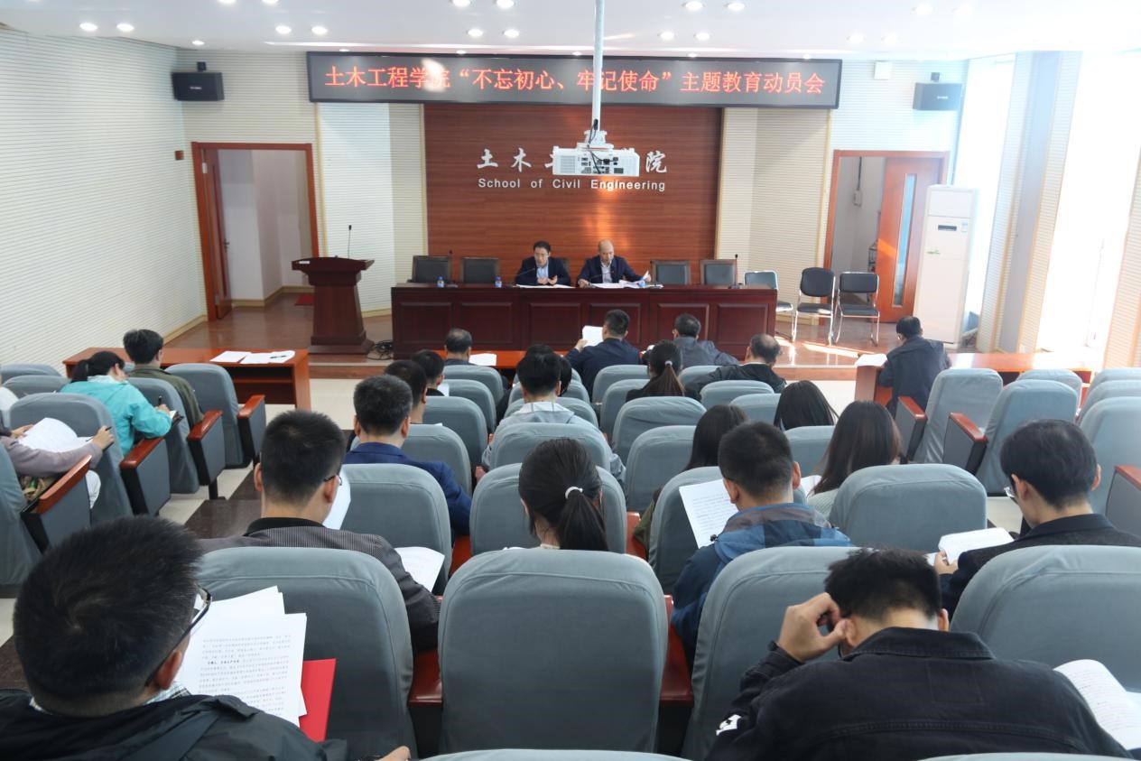 9月18日下午,土木工程学院在主东301会议厅召开“不忘初心、牢记使命”主题教育动员会。学院党委中心组成员、全体教授、党支部书记参加了会议。会议由学院主题教育领导小组组长、党委书记李洪峰主持。