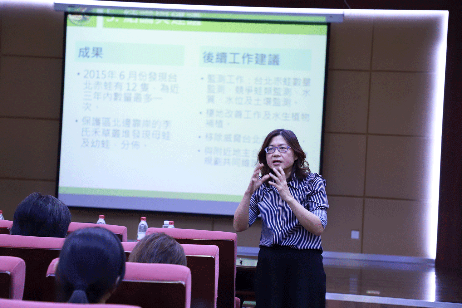 报告会的第二部分,是由参加2019海峡两岸高校园林创意设计实践工作坊的三位台湾高校专家进行分享交流。朝阳科技大学景观及都市设计系教授兼系主任林基源、台湾中国文化大学景观系兼任副教授许晋志、东海大学景观学系主任李丽雪教授分别以《台湾高校景观专业课程模式概述》《交通枢纽之场域再造》和《台北赤蛙生态栖地复育实践》为题作了交流报告。