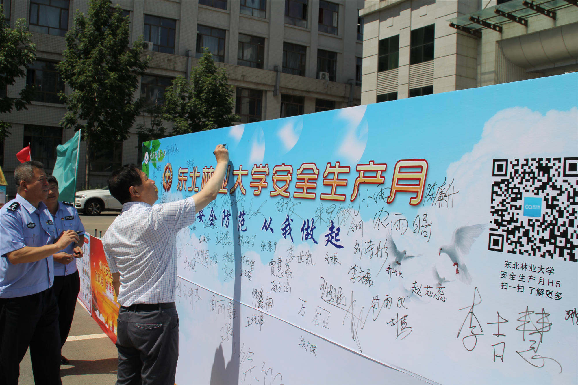 为全面贯彻落实教育部、教育厅关于开展2019年安全生产月活动通知精神,按照校党委、行政指示要求,6月21日,东北林业大学保卫处联同各相关单位于第二教学楼门前广场开展以“防风险、除隐患、遏事故”为主题的宣传日活动,校长李斌出席了活动现场。