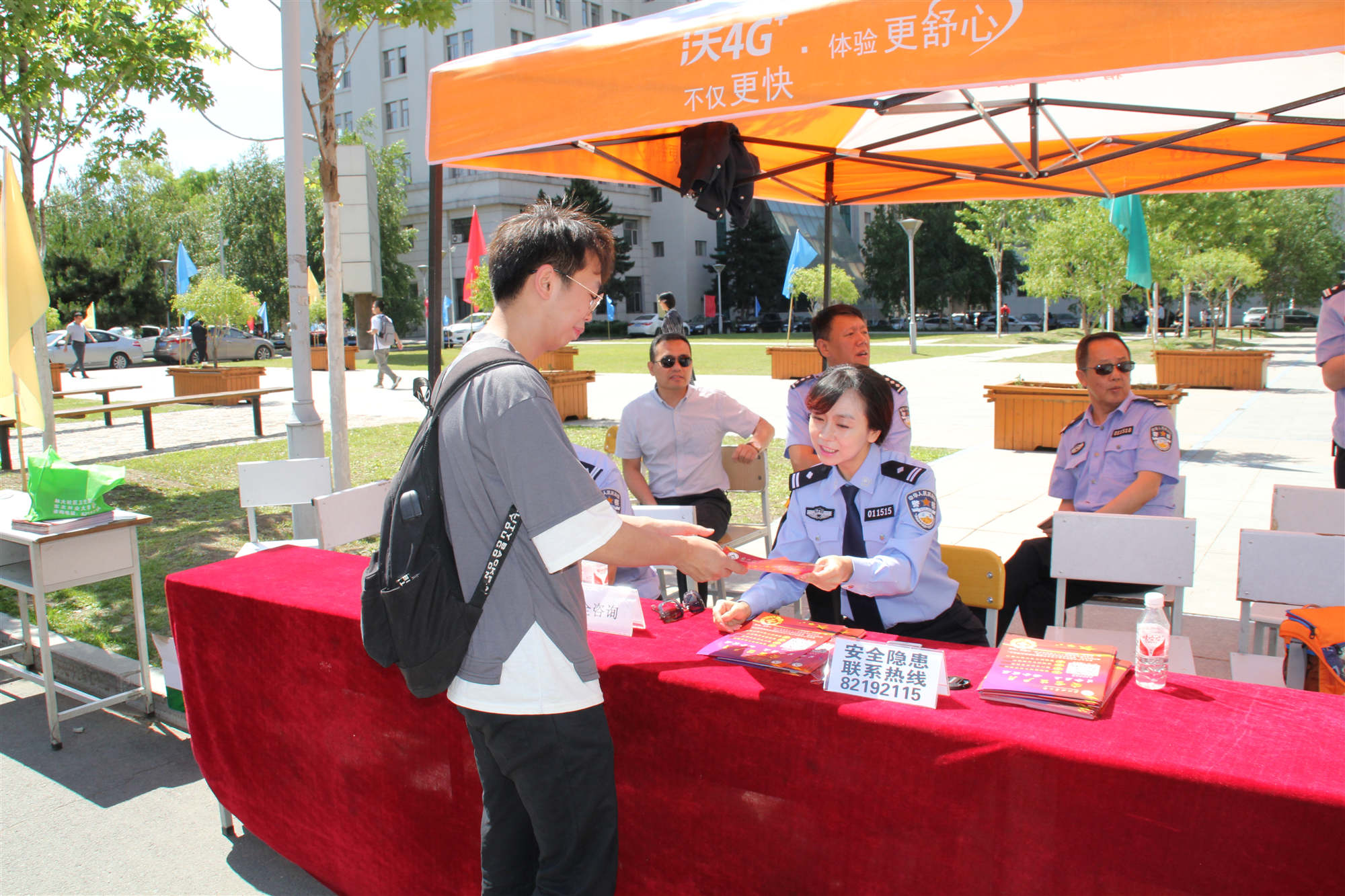 此次活动内容丰富,形式新颖,涉面广泛,包含防火、防盗、防疫、防溺水、防诈骗、防危化品事故等涉及校园安全的多个领域,意在让广大师生全面掌握安全防范知识,透彻领悟安全发展理念。活动现场,安全条幅高挂四周,安全标语醒目滚动,200余块各类安全教育展板有序摆放。保卫处、后勤服务总公司、校医院、教务处、国有资产管理处、实验室管理与条件保障处等相关单位通力合作,协调联动,所属工作人员精心布置主题活动现场,耐心讲解安全防护技能,以饱满的热情和优质的服务为同学们排忧解难,合计向学生发放安全知识传单1000余份,为学生解答各类安全问题90多个。林大学子也积极参与活动,浓笔挥墨安全防范签名墙,真挚诚扫安全教育H5二维码,纷纷对此次活动新颖生动的宣传方式赞不绝口。